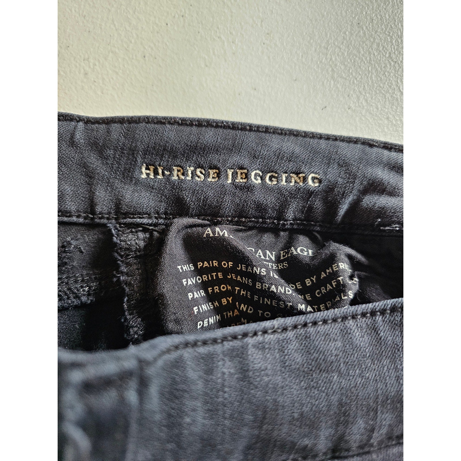 Elevate your style game with these American Eagle jegging jeans in a chic black stonewash. With a high rise cut, these long jeans are perfect for a variety of occasions, whether you're dressing up or keeping it casual. Designed for women's size 4L, the jeggings offer a flattering fit that highlights your curves in all the right ways. Crafted with quality materials, these jeggings are both comfortable and durable, ensuring that they'll become a staple in your wardrobe for years to come. Whether you pair them with a blouse and heels or a t-shirt and sneakers, these American Eagle jegging jeans are a versatile addition to any outfit.