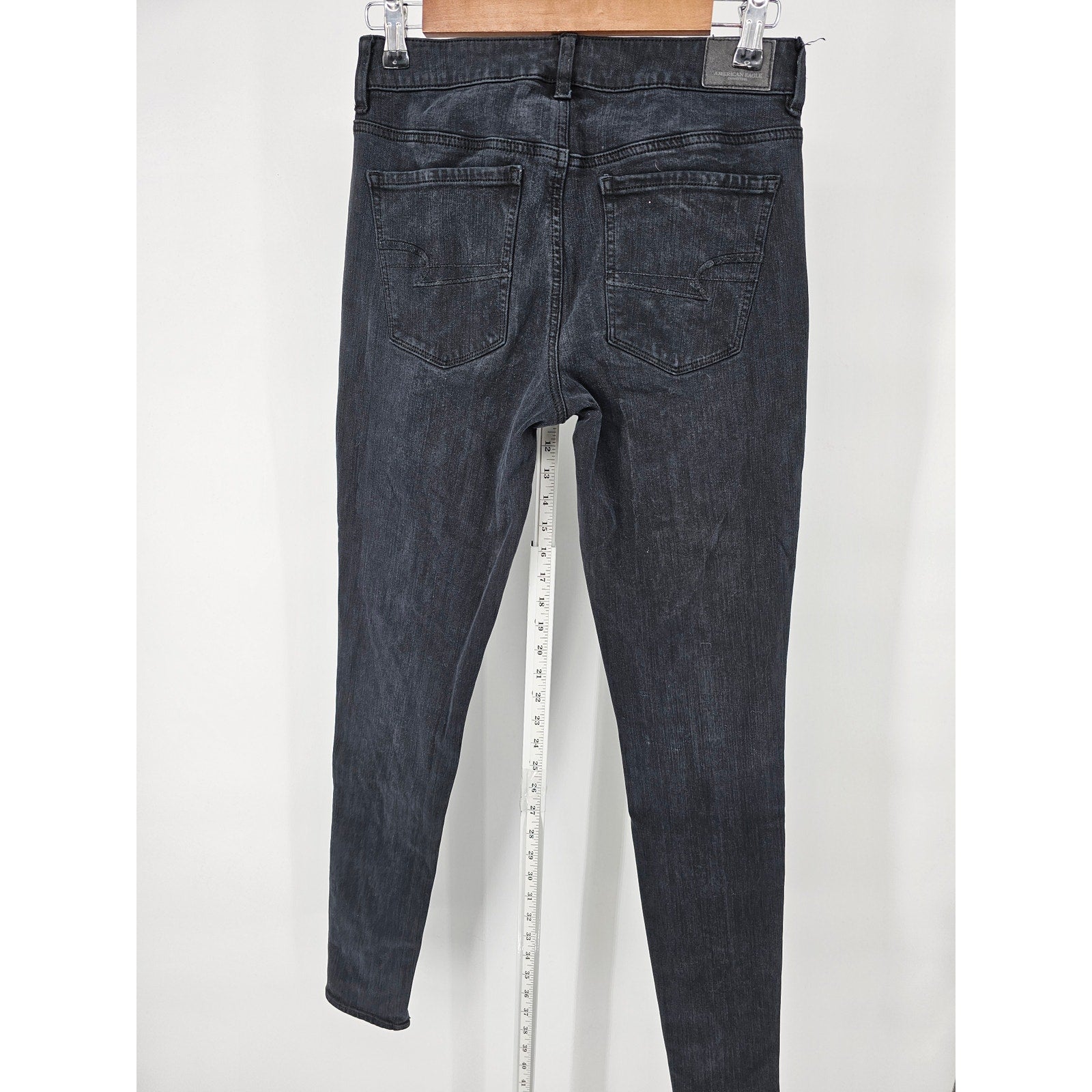 American Eagle Womens Sz 4L Long High Rise Jegging Jeans Black Stonewash