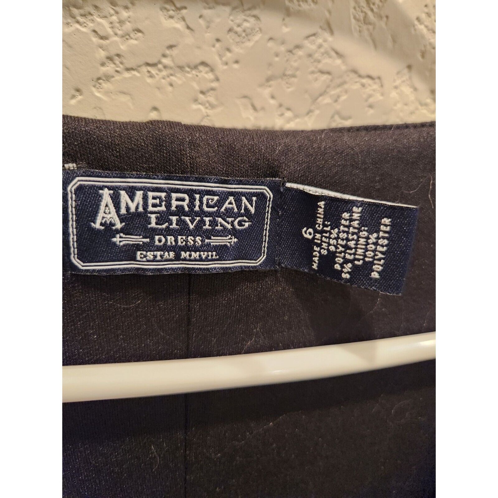 American Living Womens Sz 6 Long Sleeve Knee Length Black Dress Rhinestones