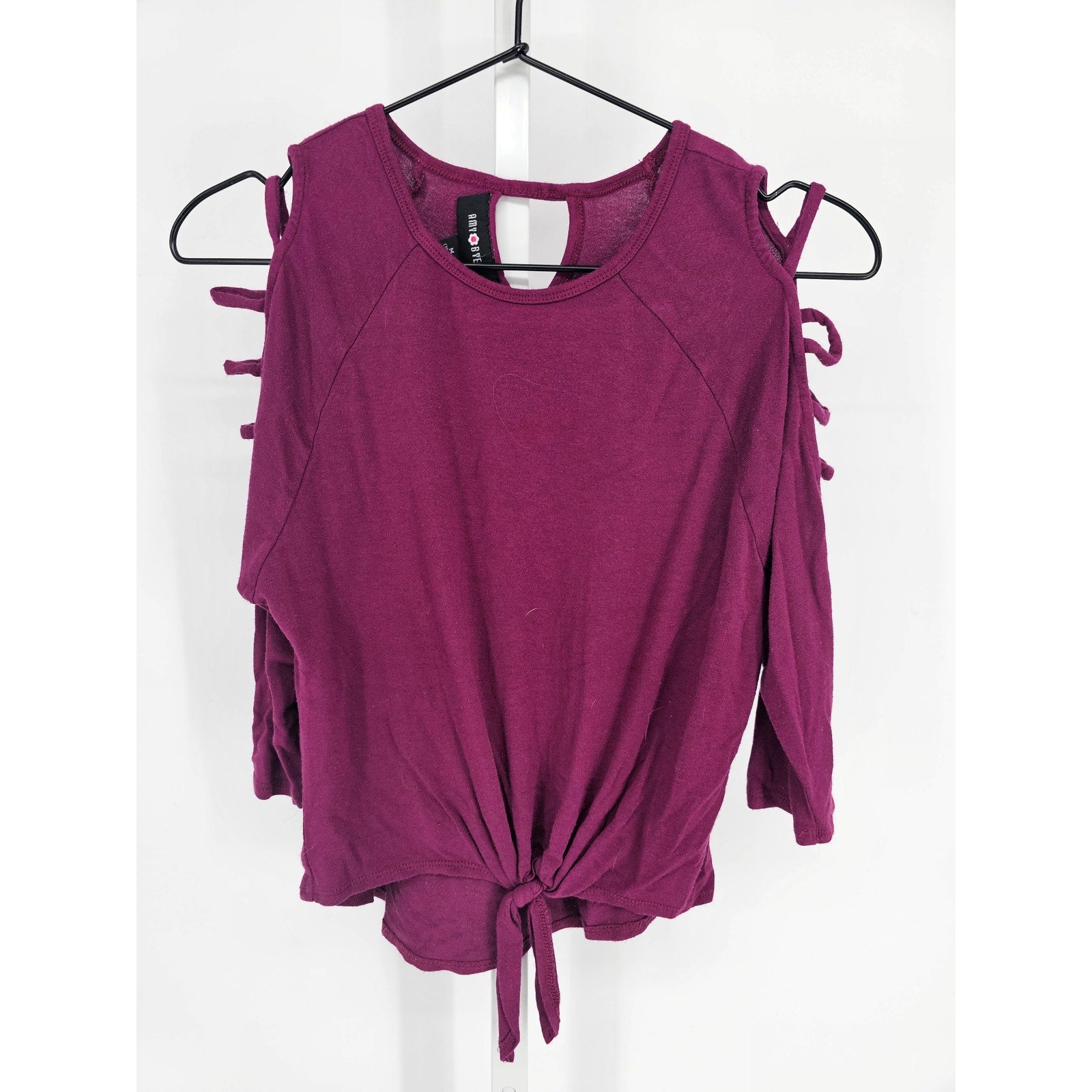 Amy Byer Girls Sz M (10-12) Purple Long Sleeve Blouse Cold Shoulder Y2K