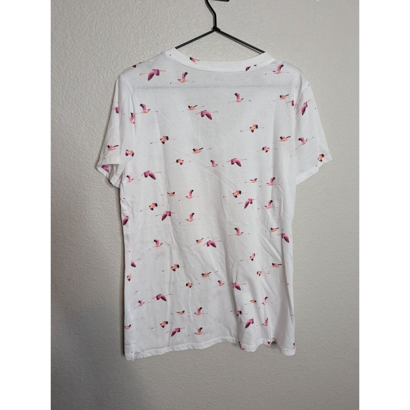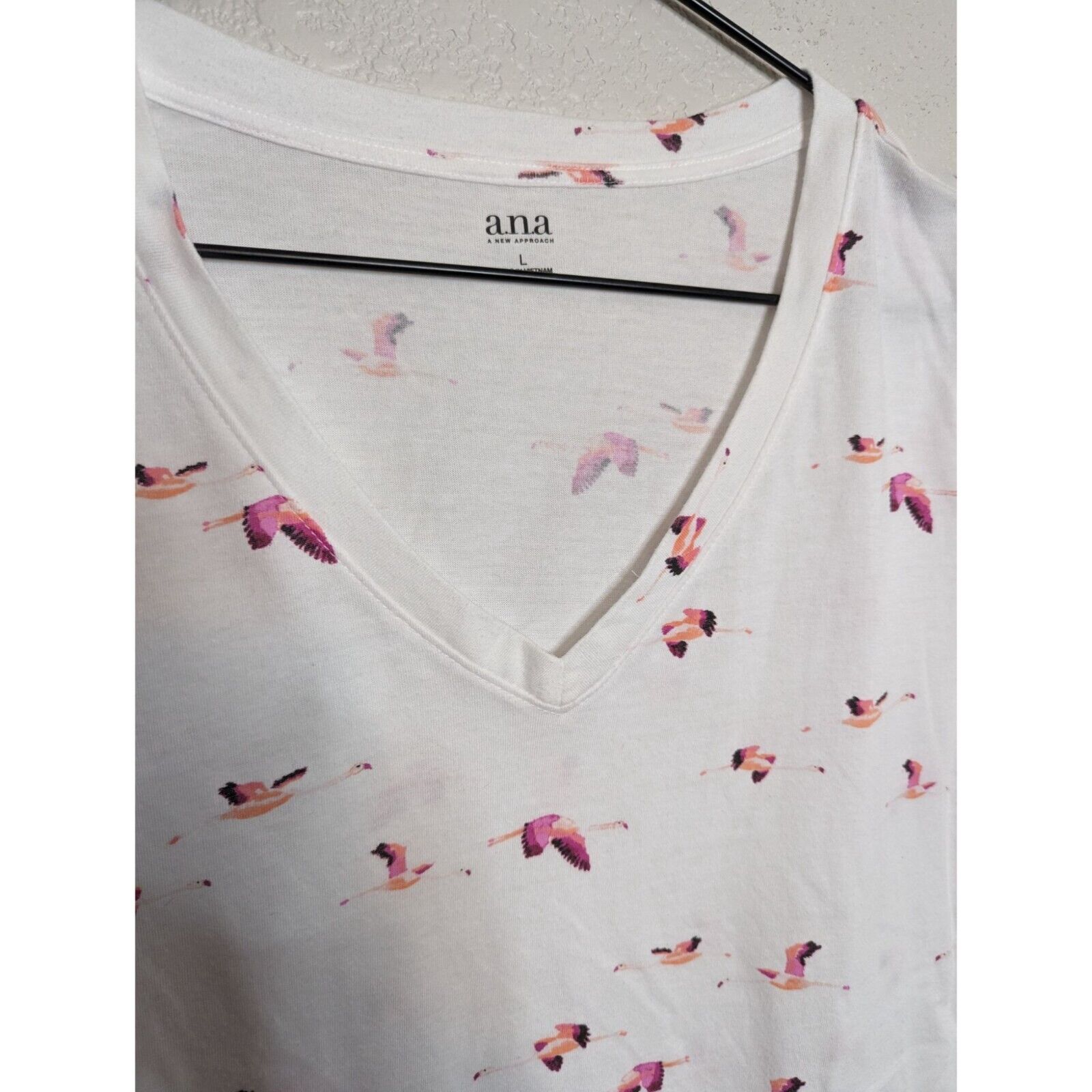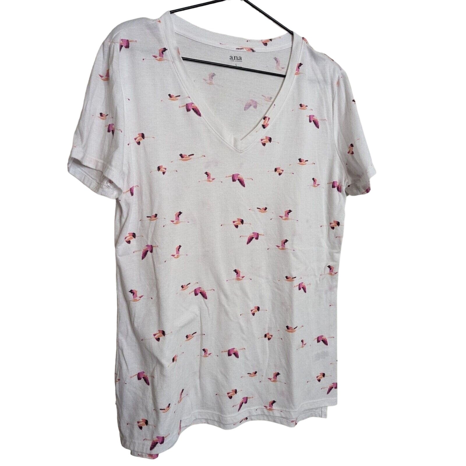 ANA A New Approach Womens Sz LL Short Sleeve T Shirt Pink White Bird Print