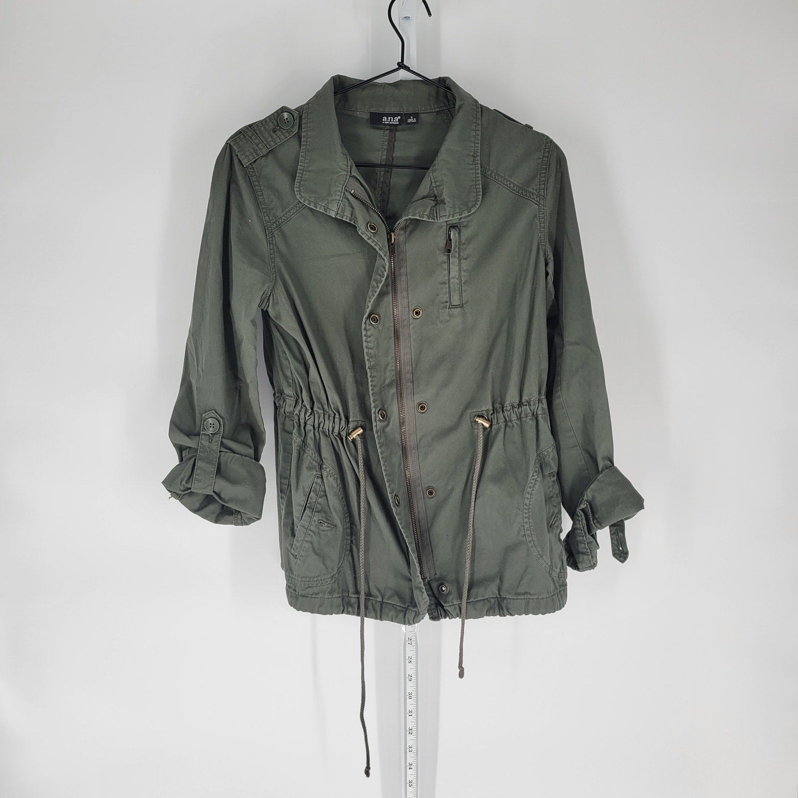 ANA A New Approach Womens Sz S Zip Up Safari Style jacket Olive Green and Gold