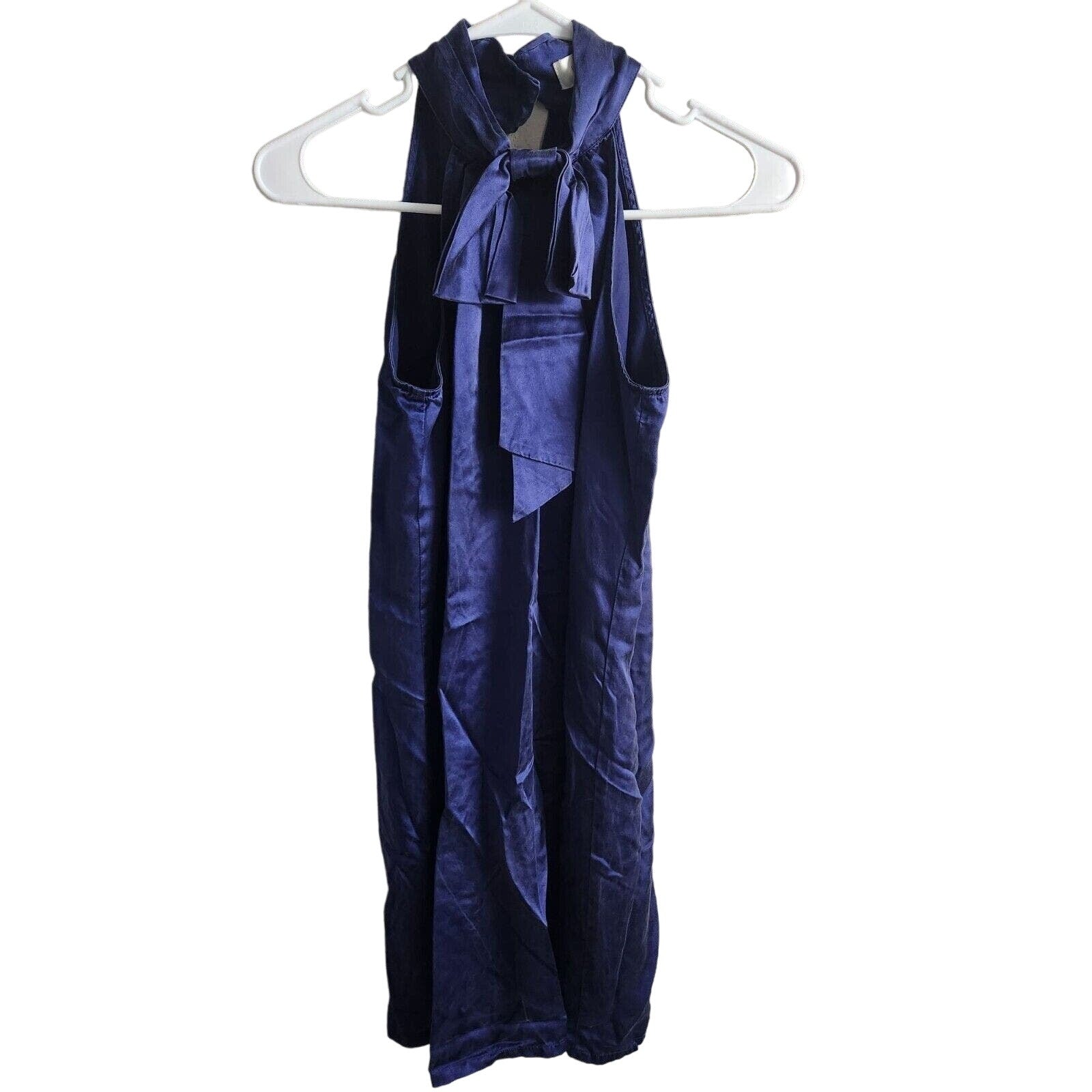 Ann Taylor Loft Womens Sz 4 Knee Length Satin Formal Dress Bow Front Blue
