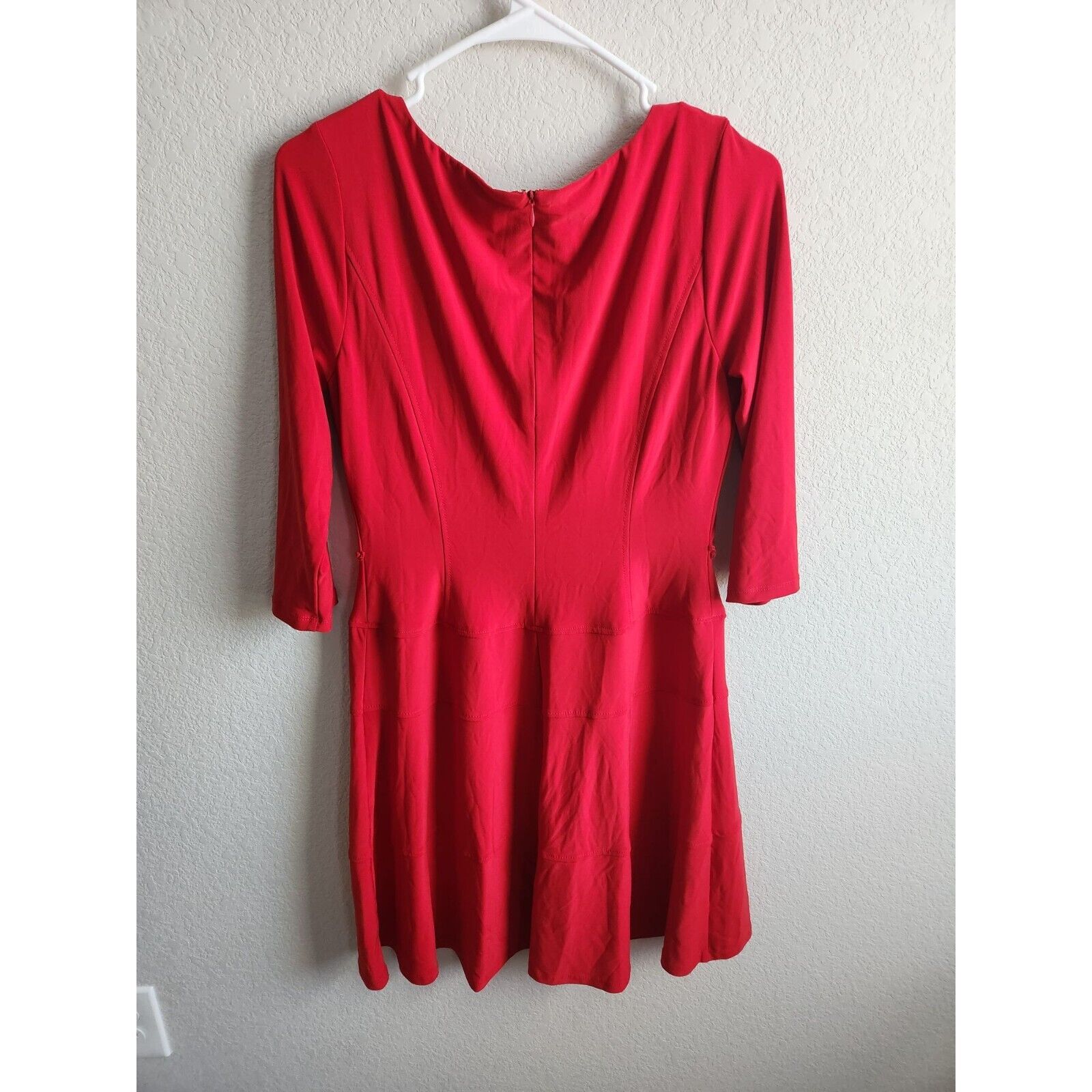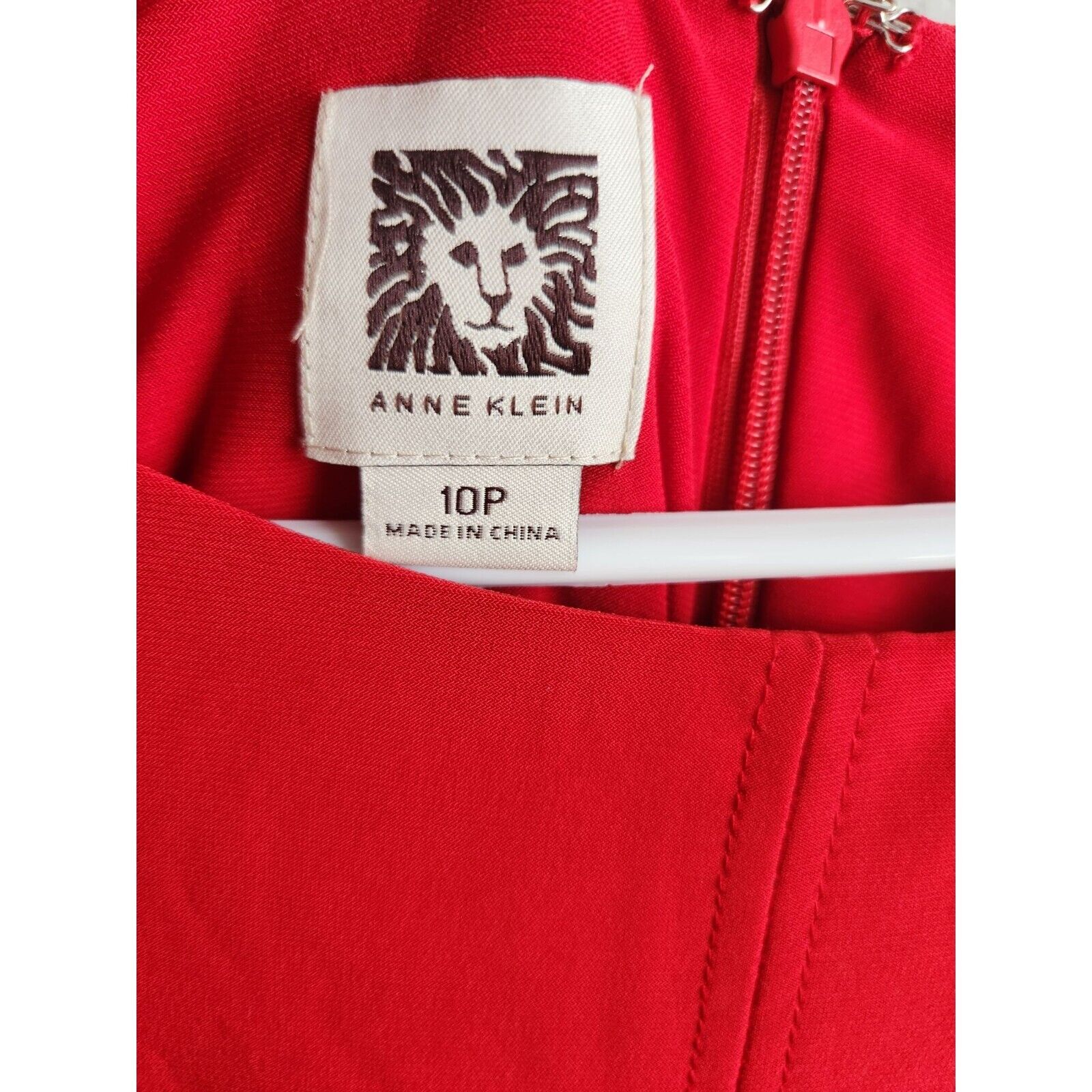 Anne Klein Womens Sz 10P Knee Length Solid Red Dress Long Sleeve