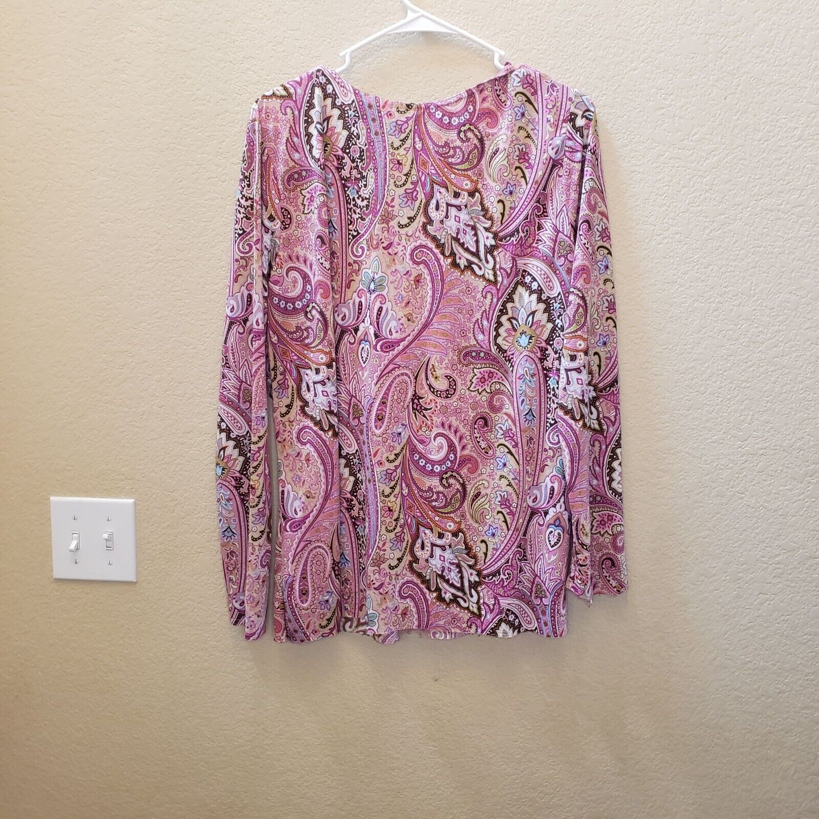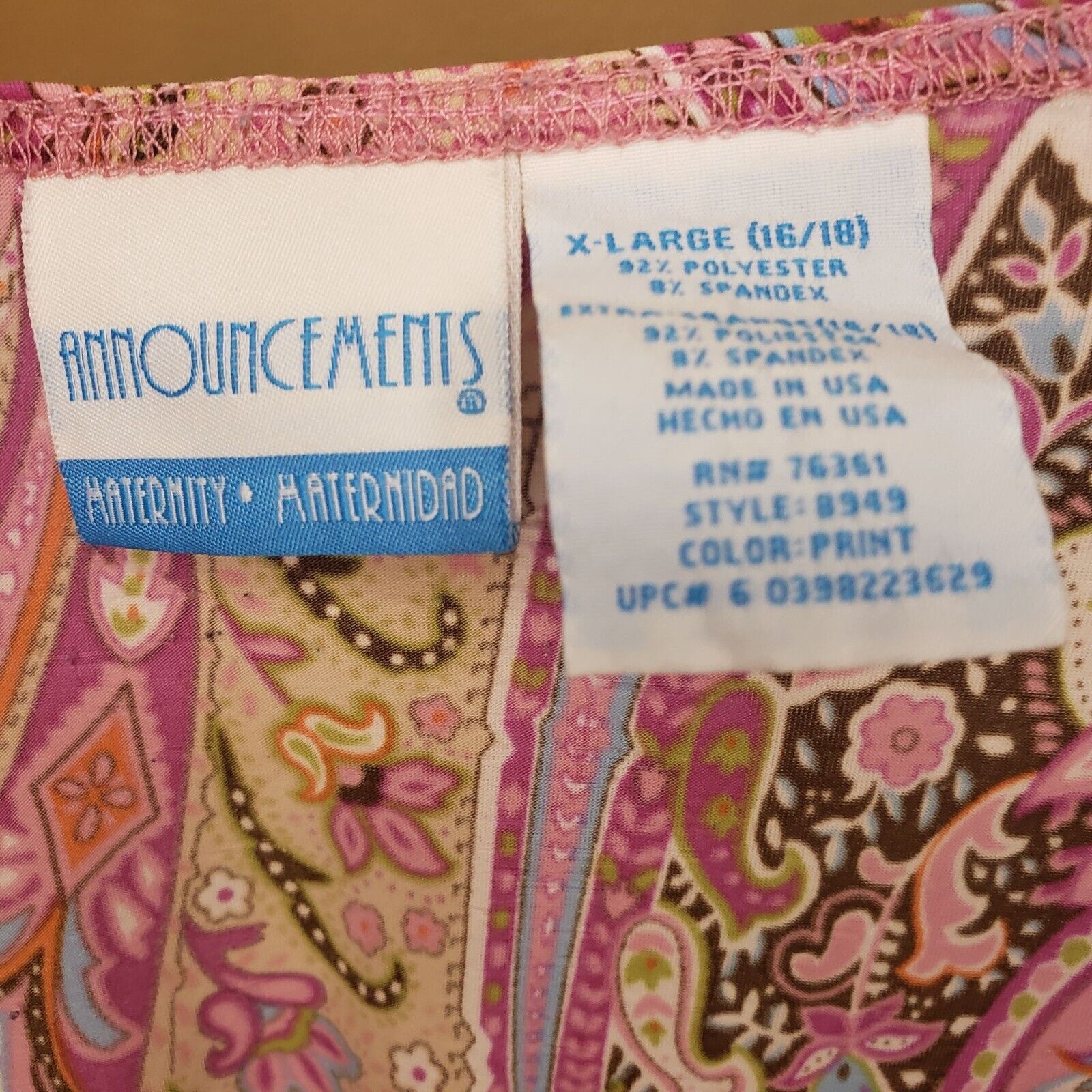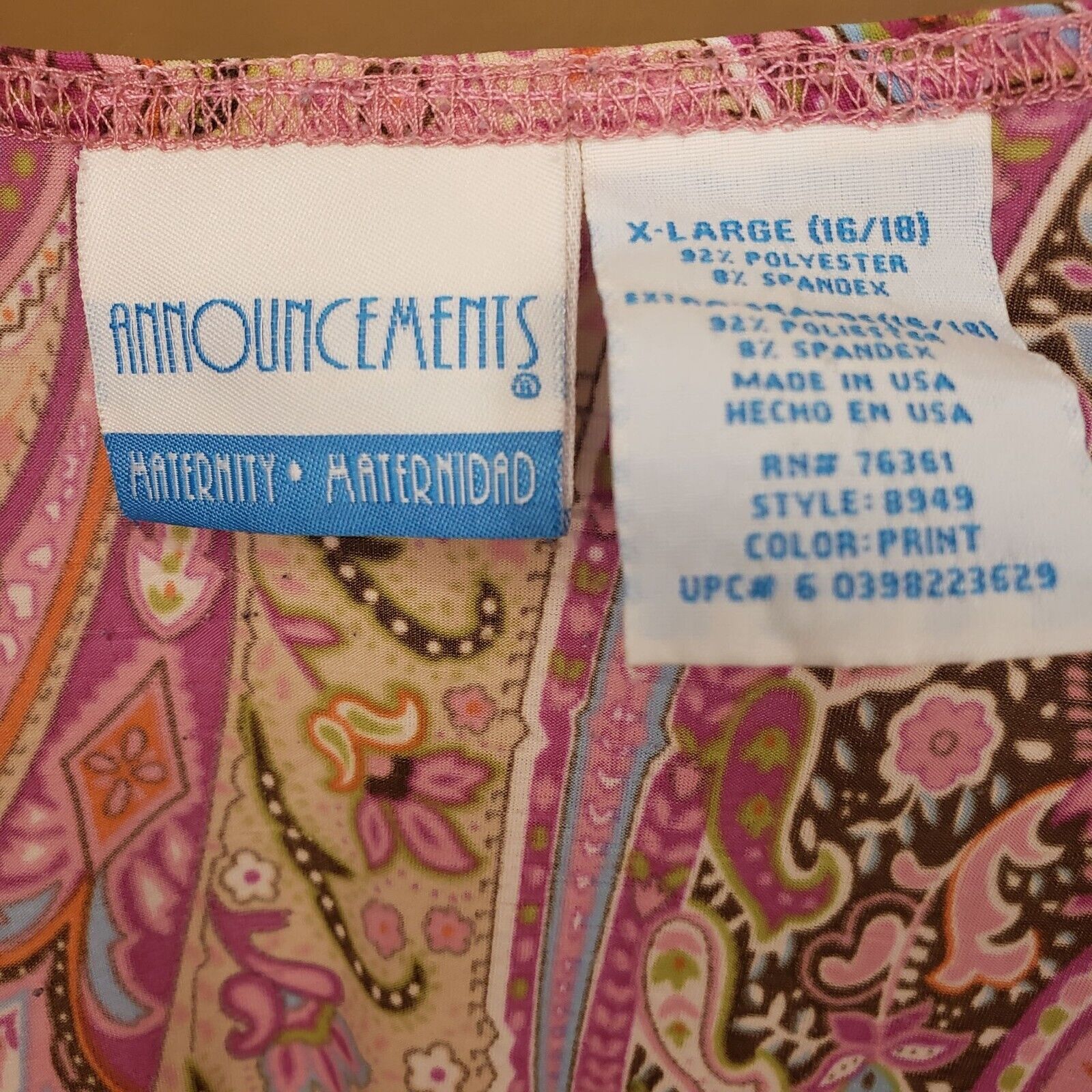 Announcements Maternity Womens Sz XL Long Sleeve Paisley Blouse Pink