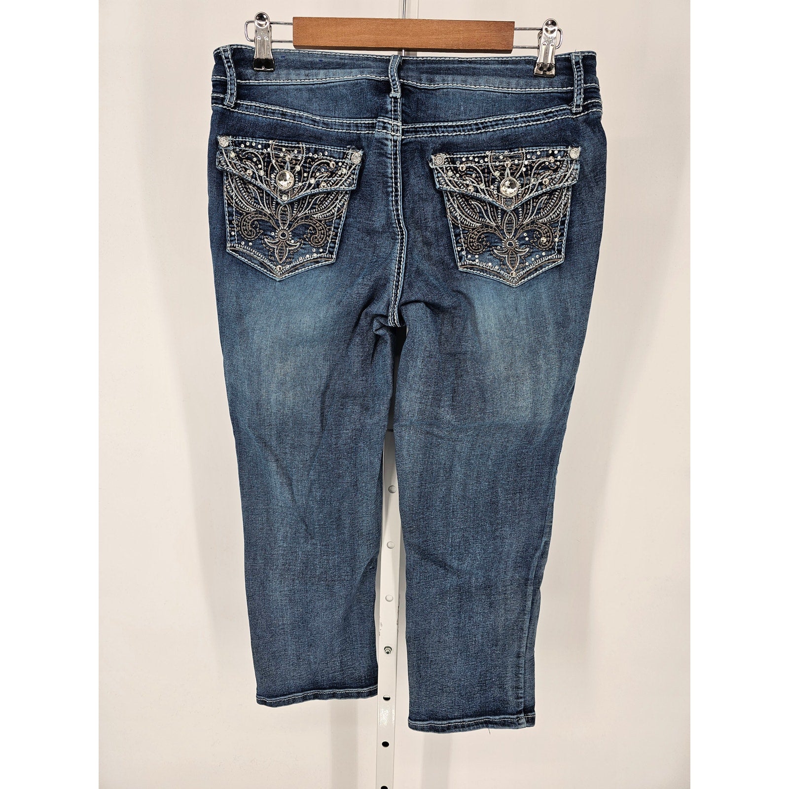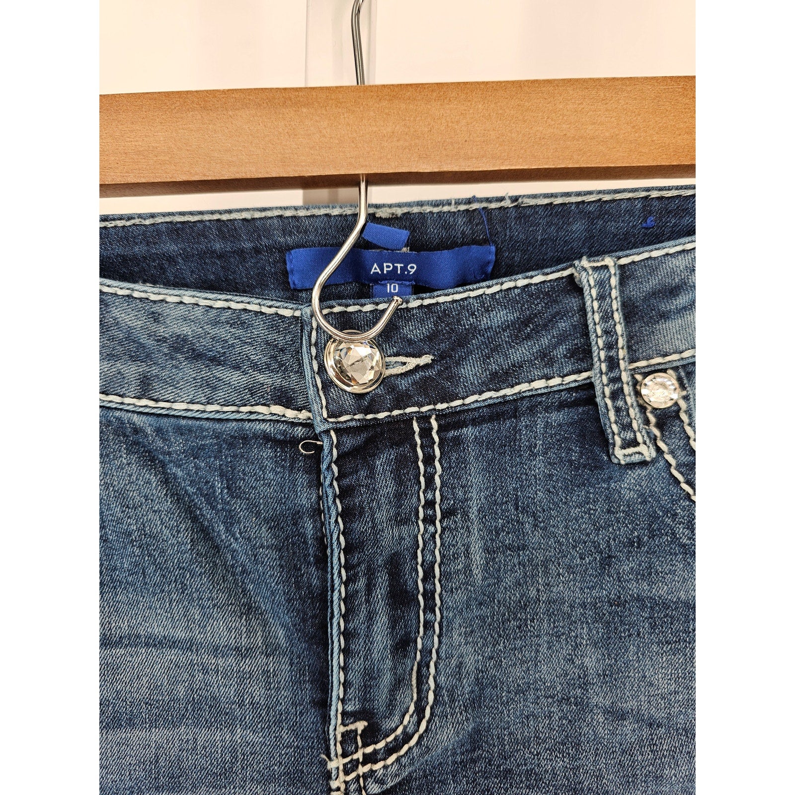 Apt 9 Womens Sz 10 Cropped Slim Leg Blue Jeans Thick Stitch Flap Pocket