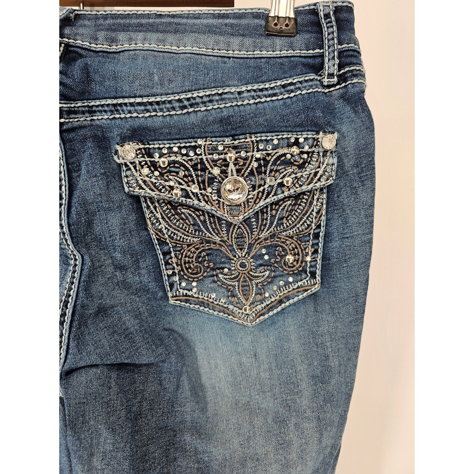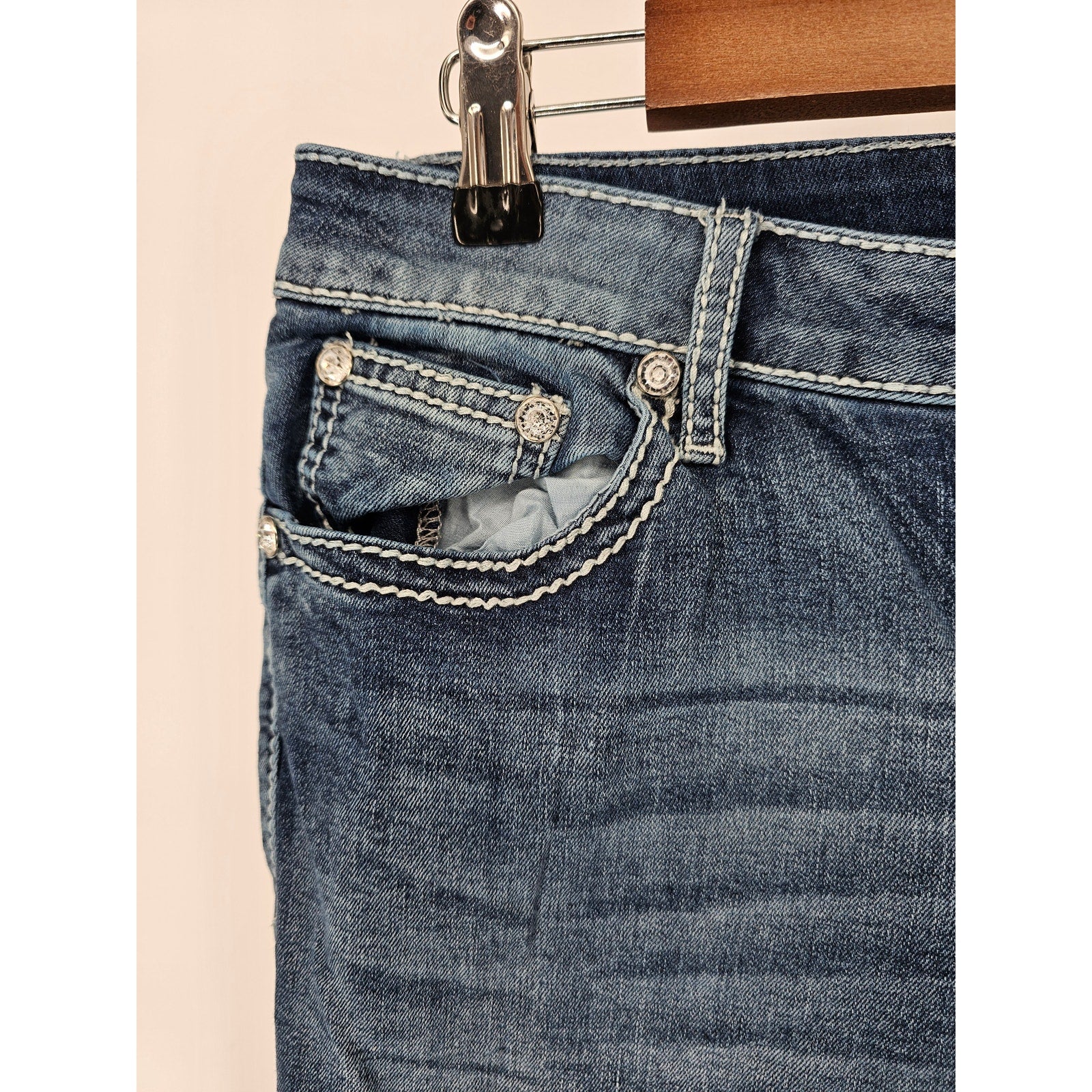 This pair of women's cropped slim leg blue jeans is a must-have for any fashion-forward individual. The thick stitch detailing and flap pocket add a touch of sophistication to an already stylish piece. Perfect for those looking to make a statement with their clothing choices, these jeans are sure to turn heads. Crafted with high-quality materials, these jeans are built to last. The size 10 women's jeans are perfect for anyone looking for a comfortable yet flattering fit. Ideal for any occasion, these jeans are a versatile addition to any wardrobe.