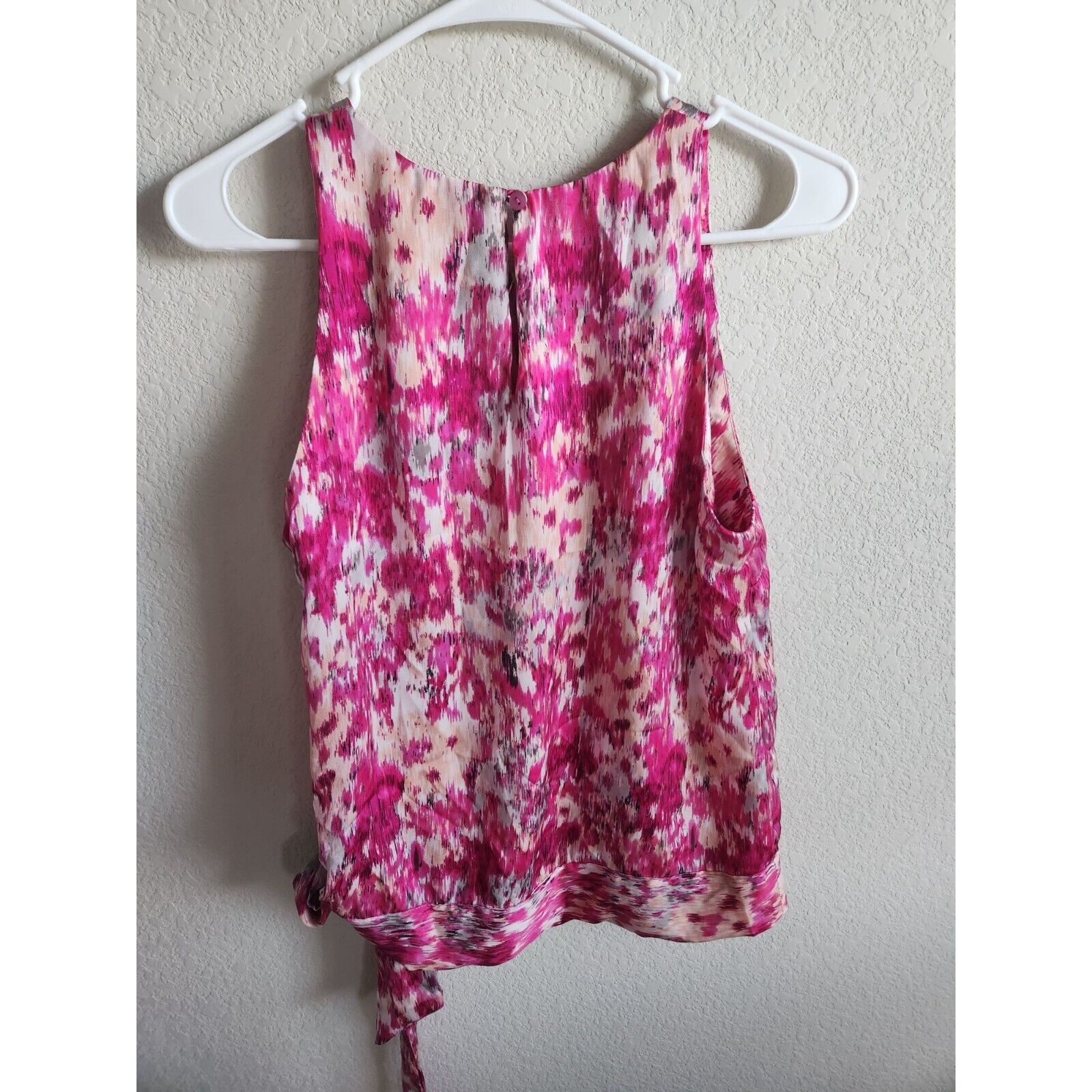 APT 9 Womens Sz M Sleeveless Blouse Pink White Gray Tie Side