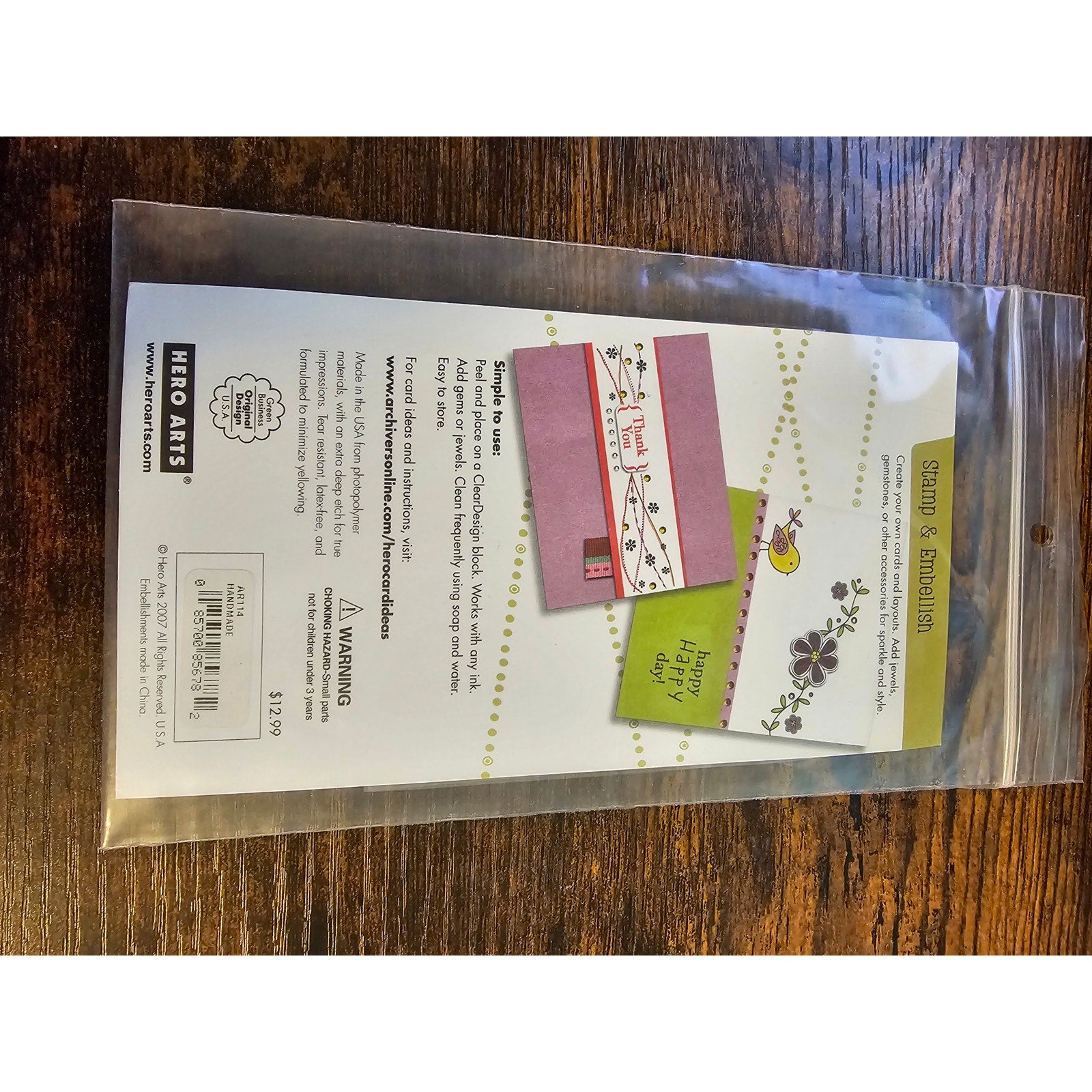 Archivers Hero Arts Clear Rubber Stamp and Embellish Set Handmade Handstamped