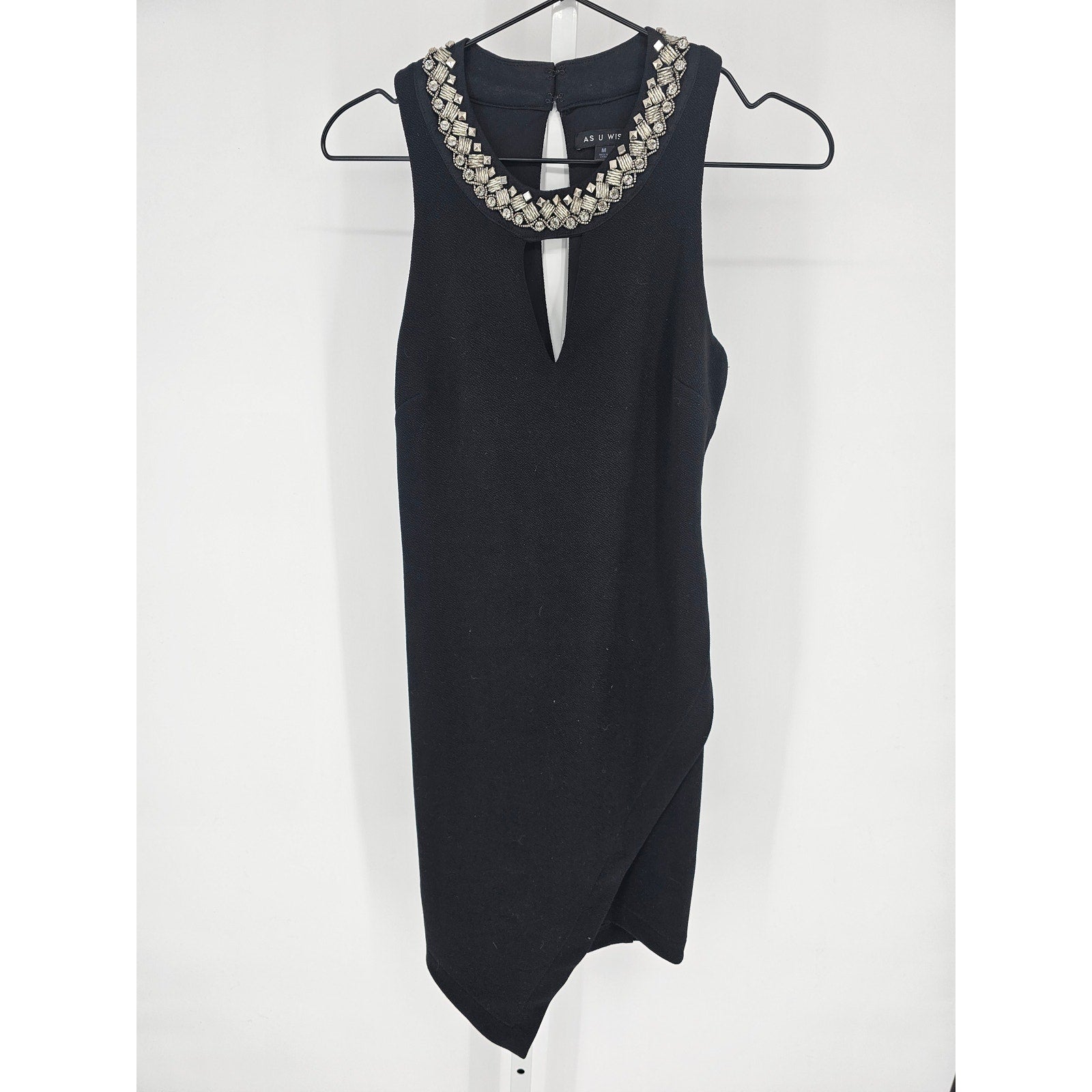 As U Wish Womens Sz M Knee Length Cocktail Dress Black Rhinestone Neckline