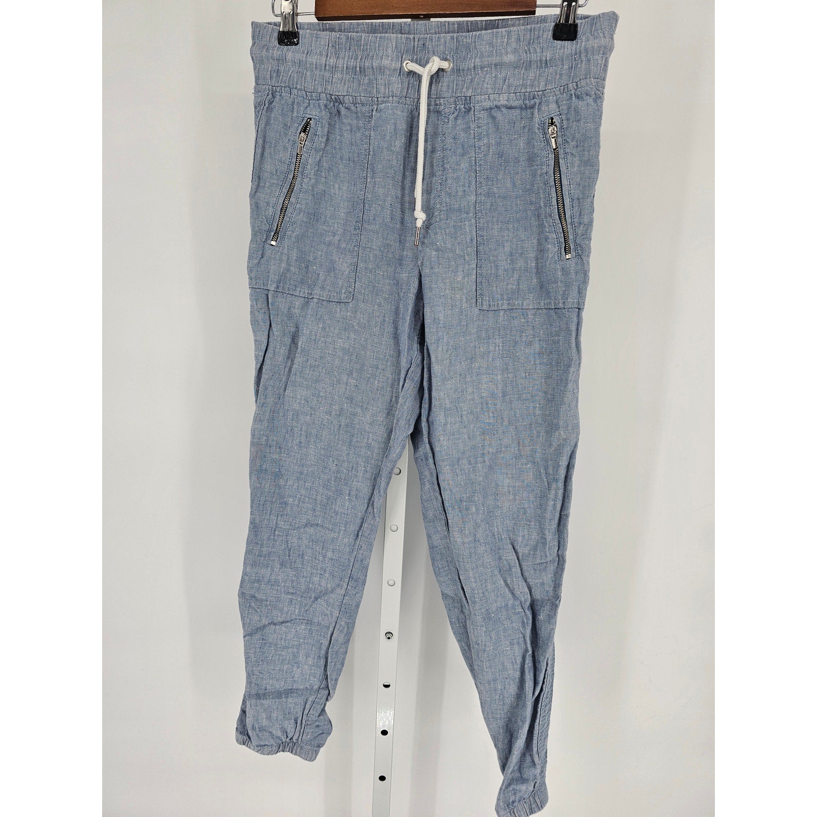 Athleta Blue Elastic Tie Waist Cabo Linen Jogger Athletic Pants Size 4