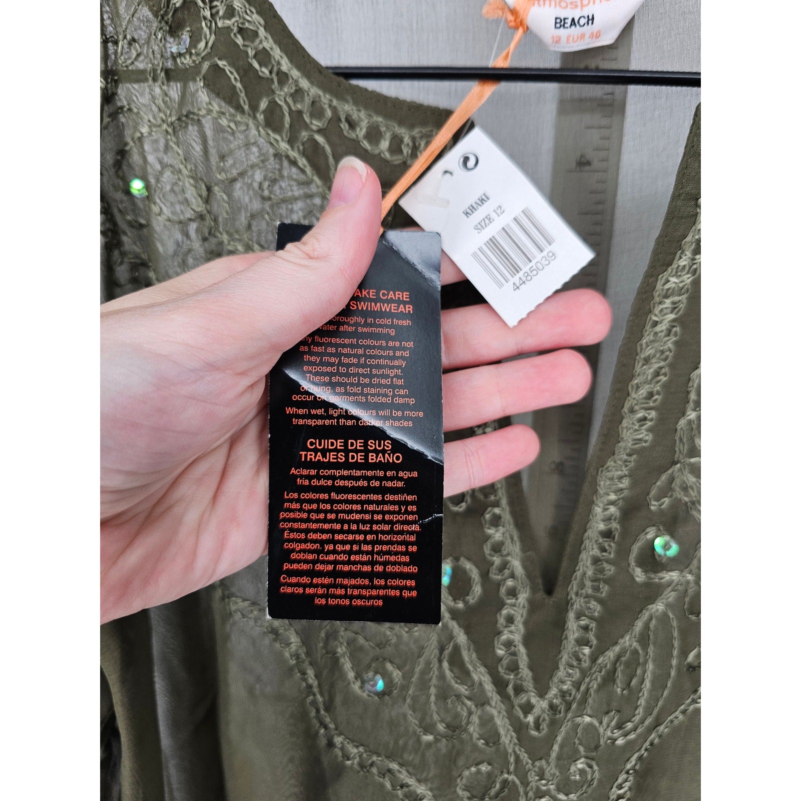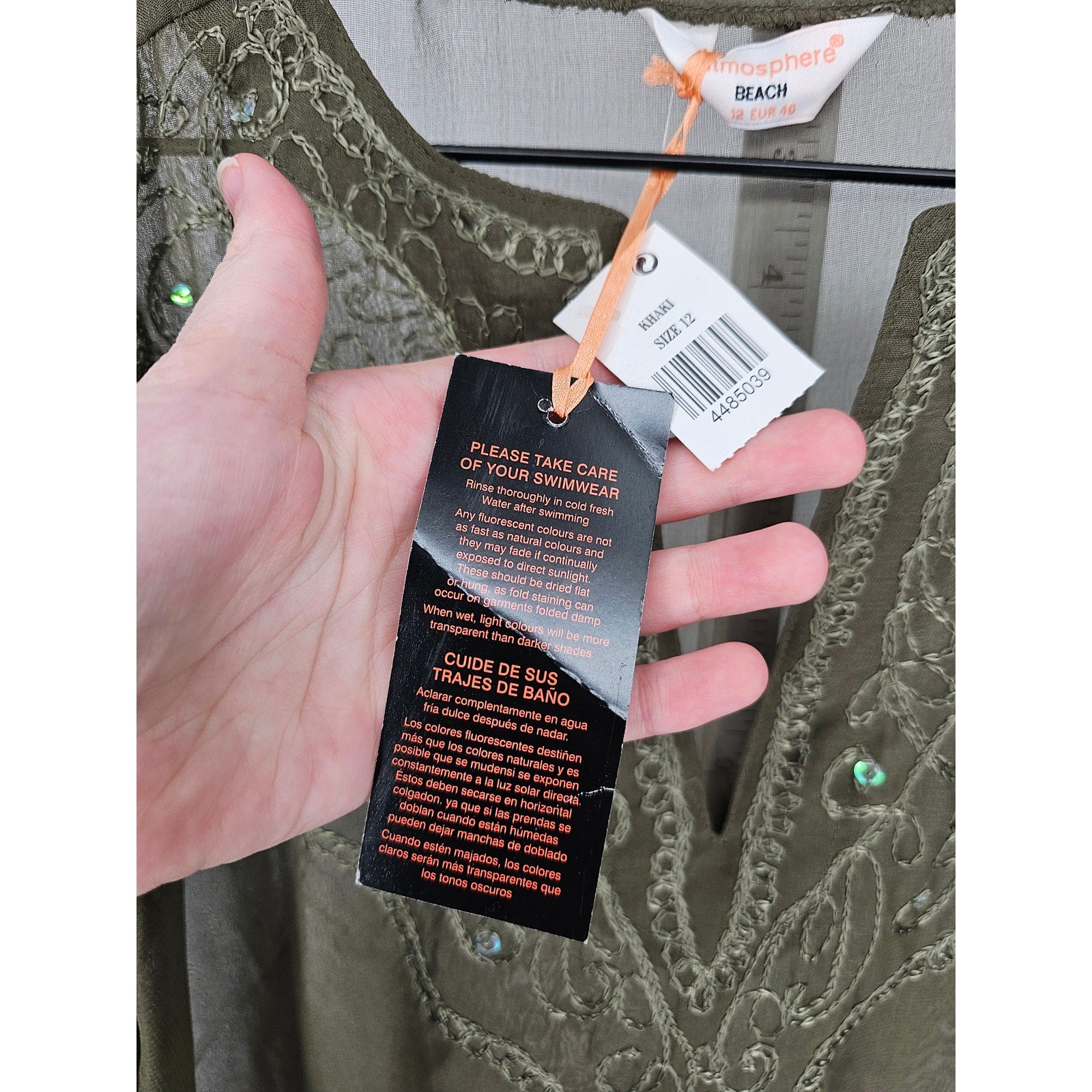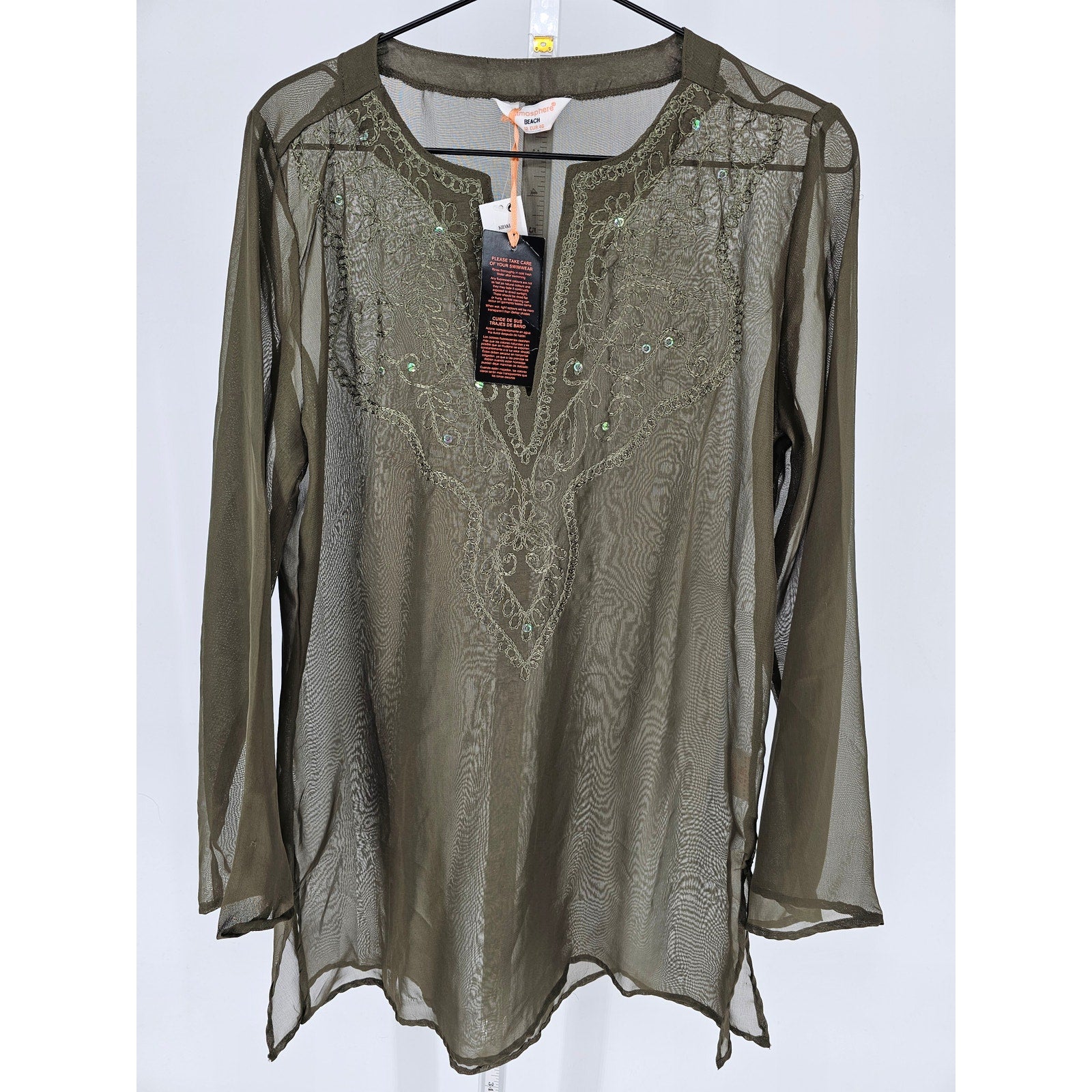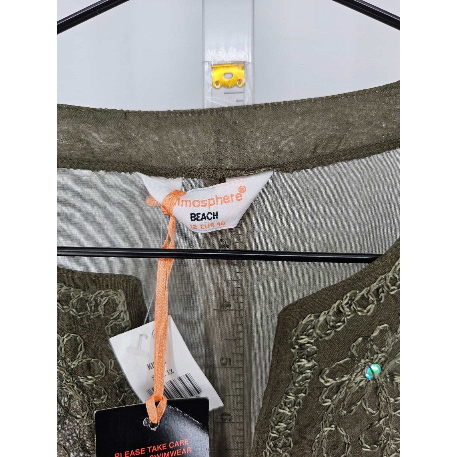 Atmosphere Beach Womens 12 Long Sleeve Swimsuit Coverup Olive Green Embroidered