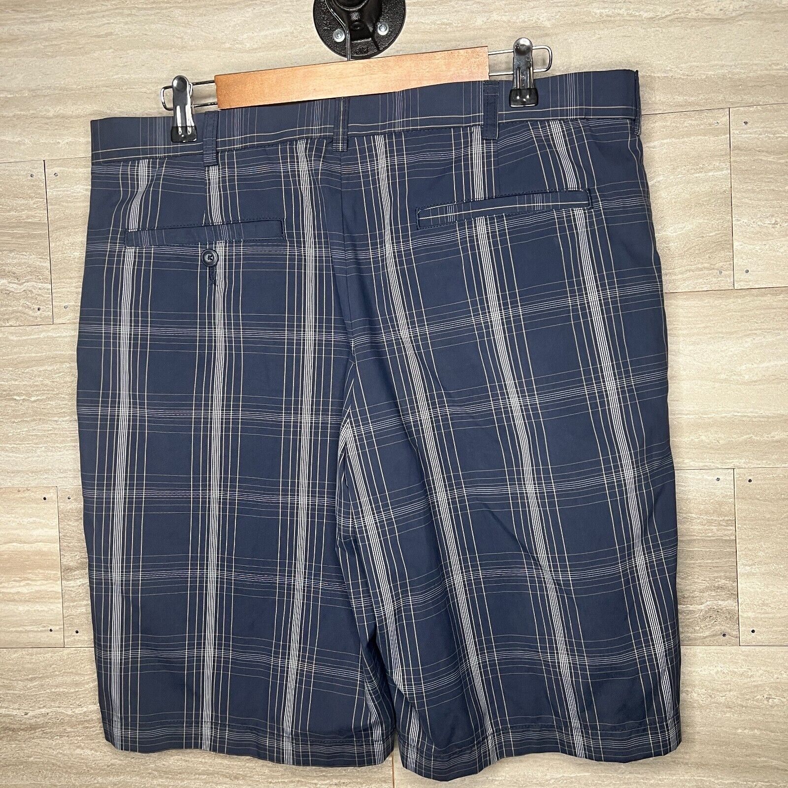 Ben Hogan Performance Mens Sz 36 Golf Shorts Navy Blue Gray Plaid