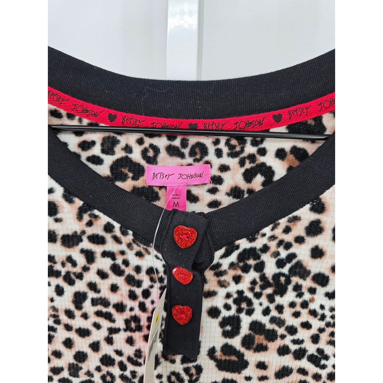 Betsey Johnson Womens Sz M Leopard Print Fuzzy Long Sleeve Pajama Top NEW