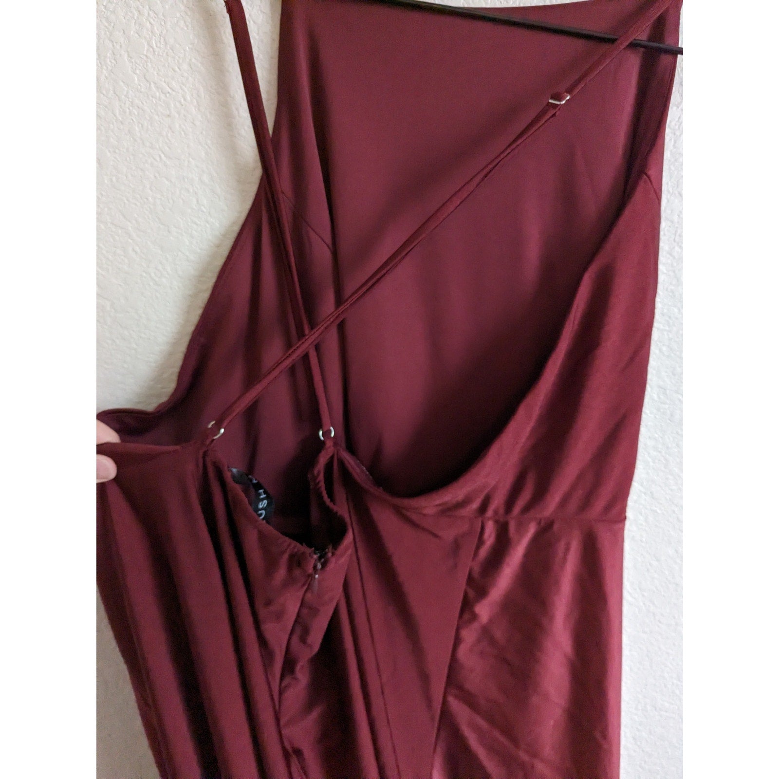 Enhance your formal attire with this stunning burgundy red maxi dress. Designed with a low back and slinky fabric, this dress is sure to turn heads at any event. The blush mark adds a unique touch to the aesthetic of the dress, making it stand out from the rest. Made for women's size 2X, this dress is perfect for those who want to feel confident and stylish. The elegant design of the dress is suitable for any formal occasion and can be dressed up or down with the right accessories. Elevate your wardrobe with this beautiful piece today.