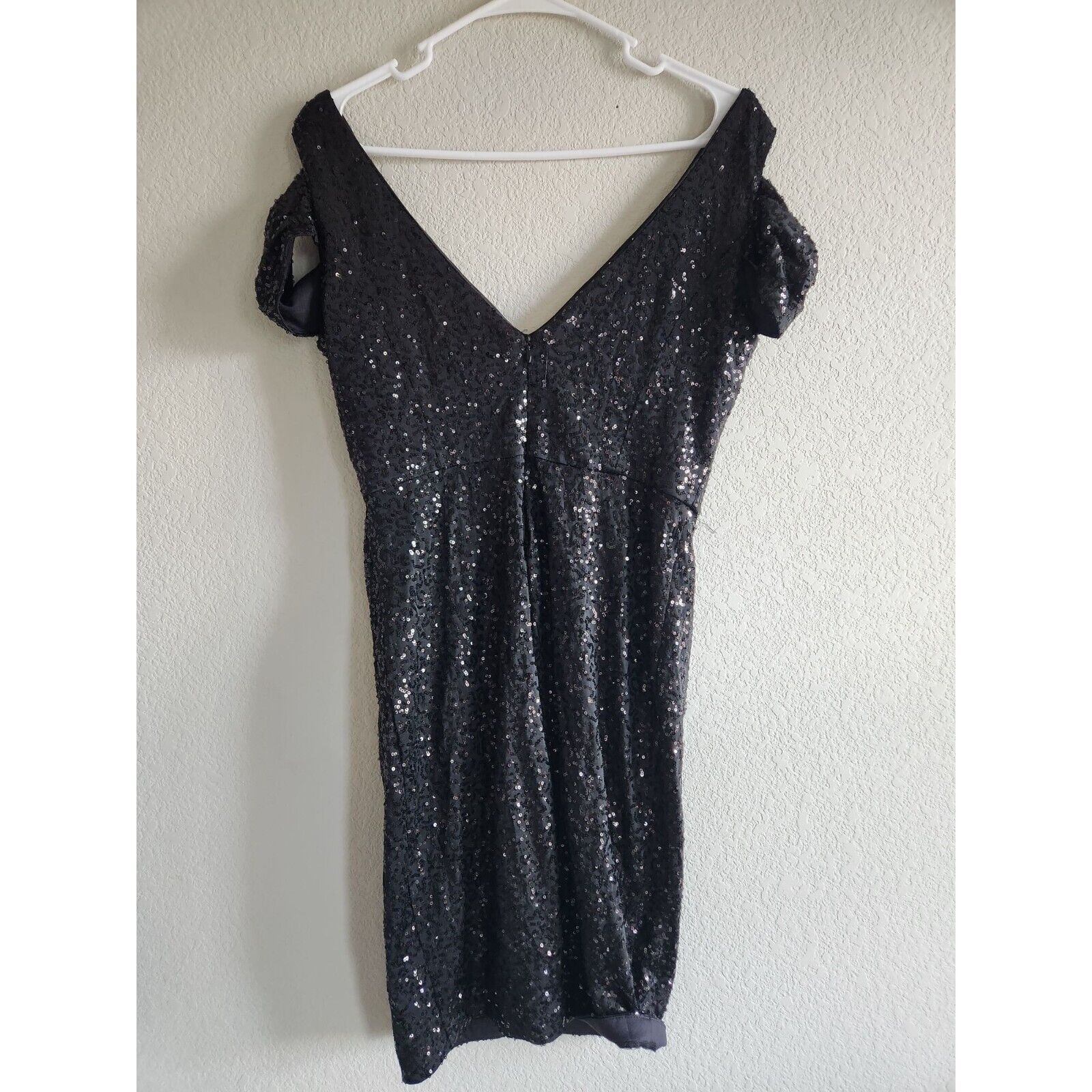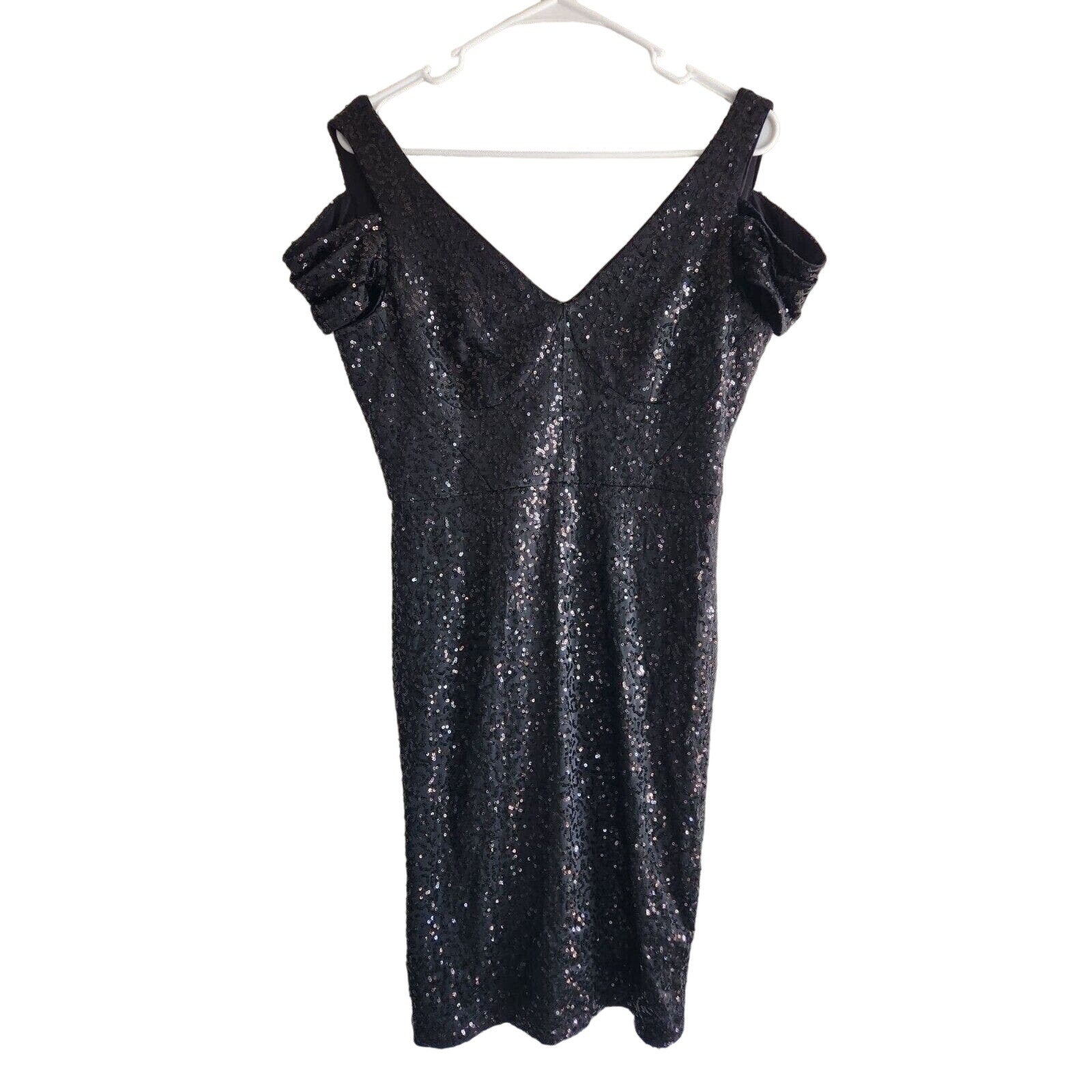 Calvin Klein Womens Sz 6 Knee Length Black Full Sequin Dress Off Shoulder