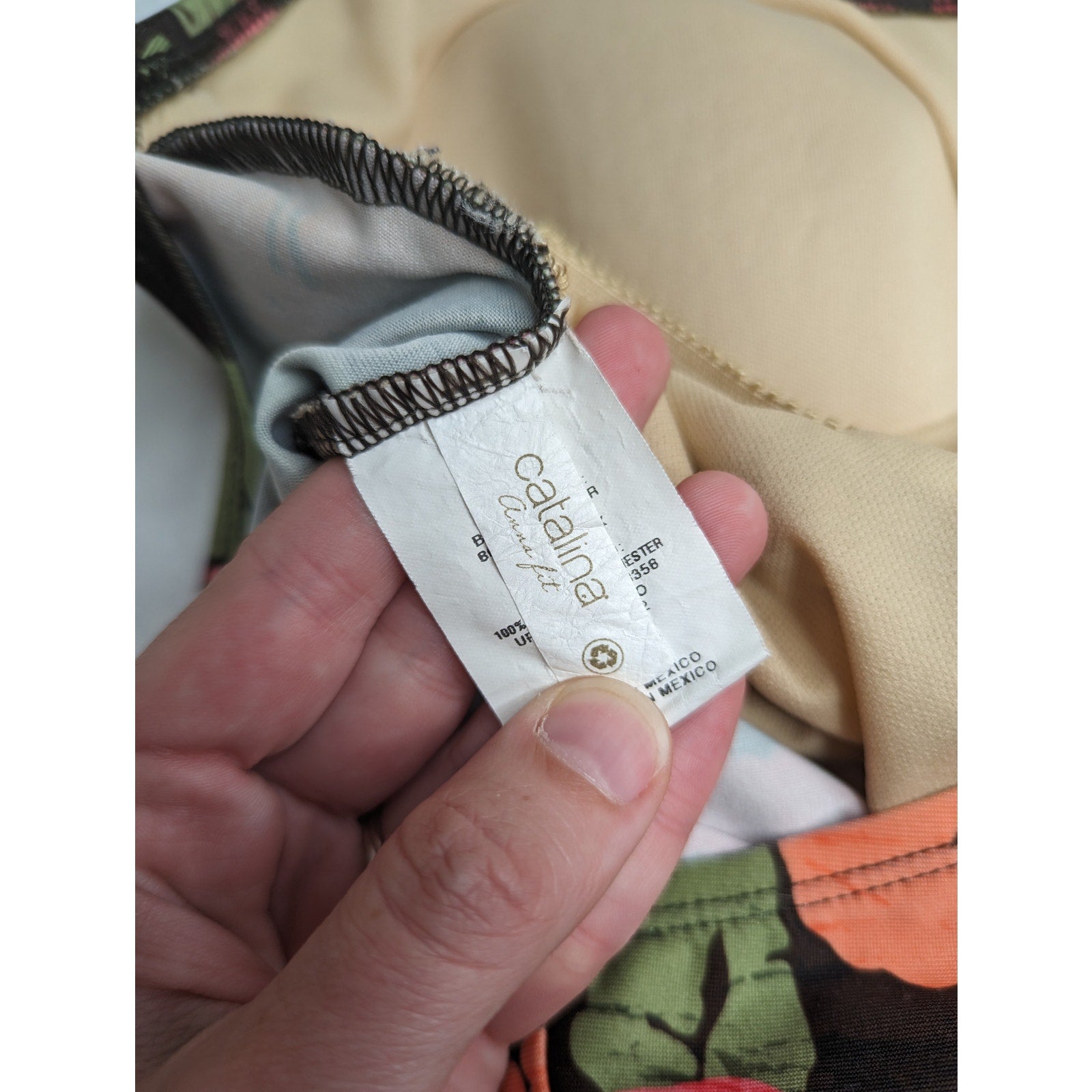 Catalina Anna Fit Womens Sz L One Piece Swimsuit Halter Pink Green Brown Floral