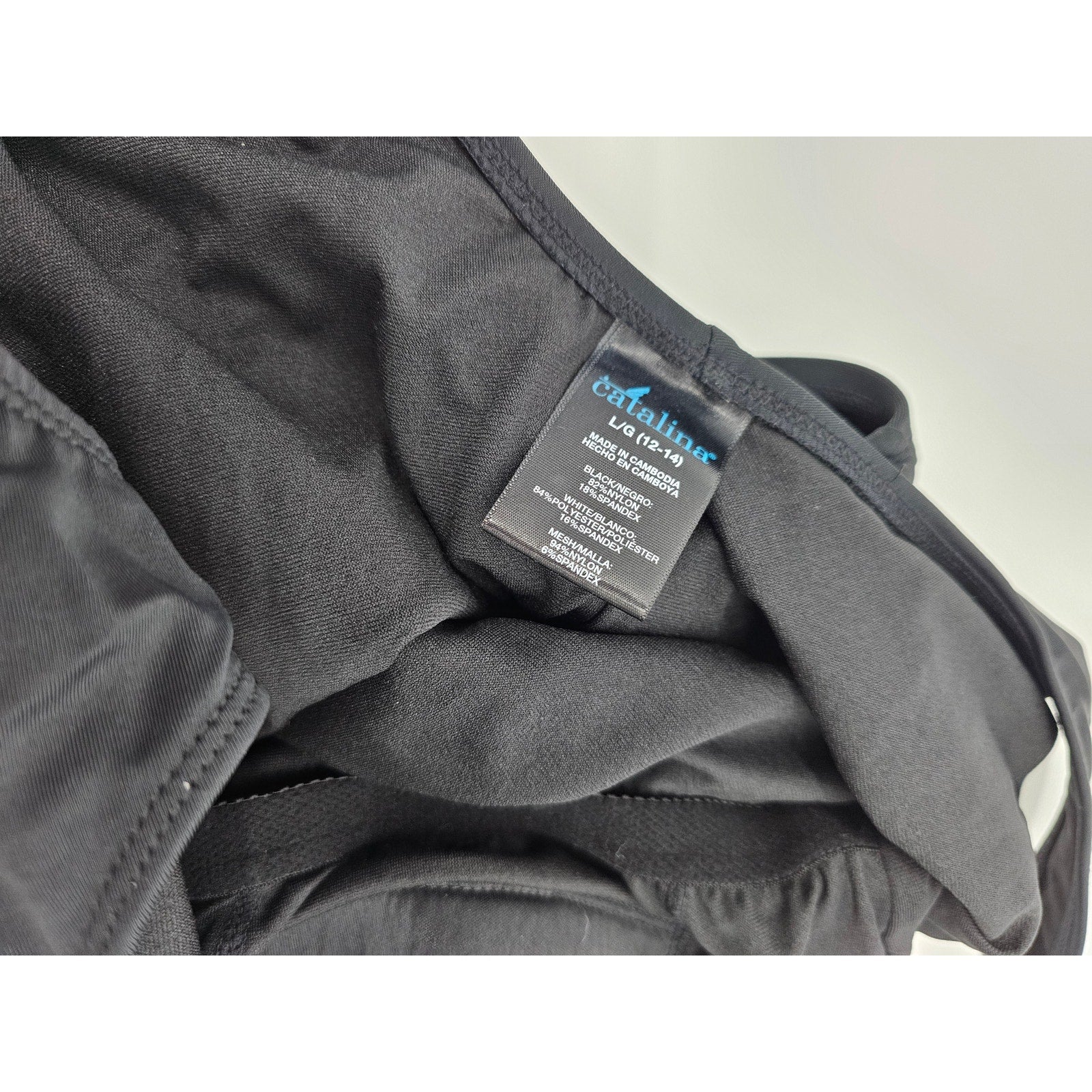 Catalina Womens Sz L One Piece Swimsuit Black White Tummy Control