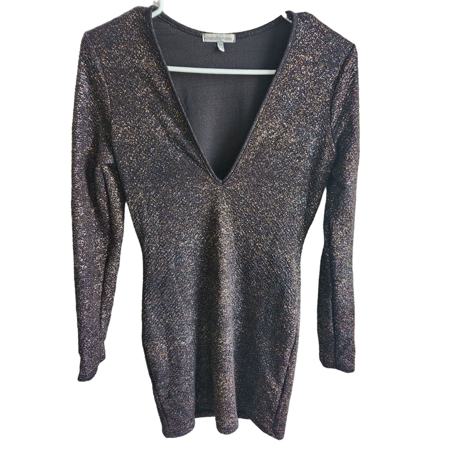 Charlotte Russe Sz M Mini Dress Long Sleeve Glitter Sparkly V Neck