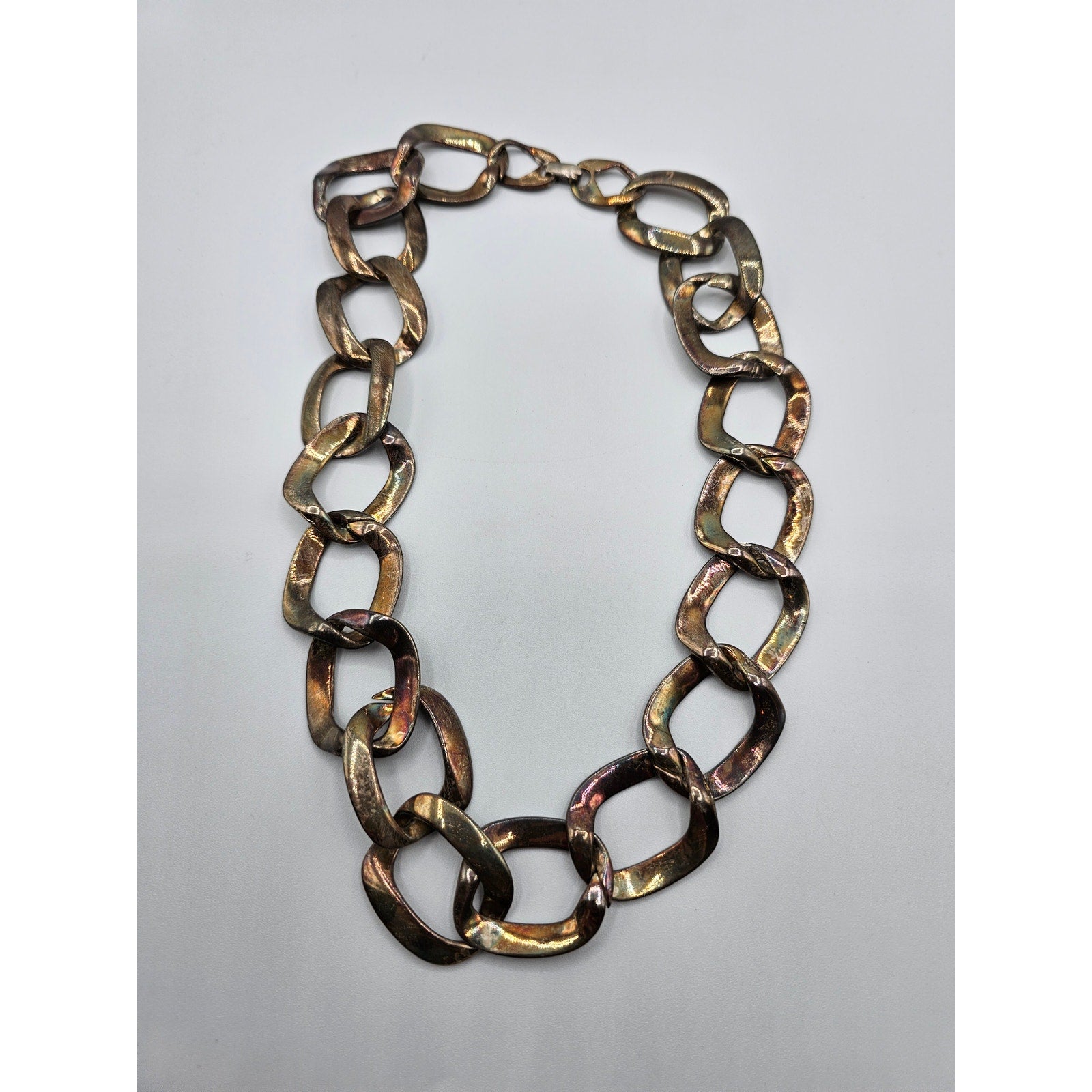 Chicos Womens Large Chain Necklace Gold Silver Tarnished Chunky Statement Piece