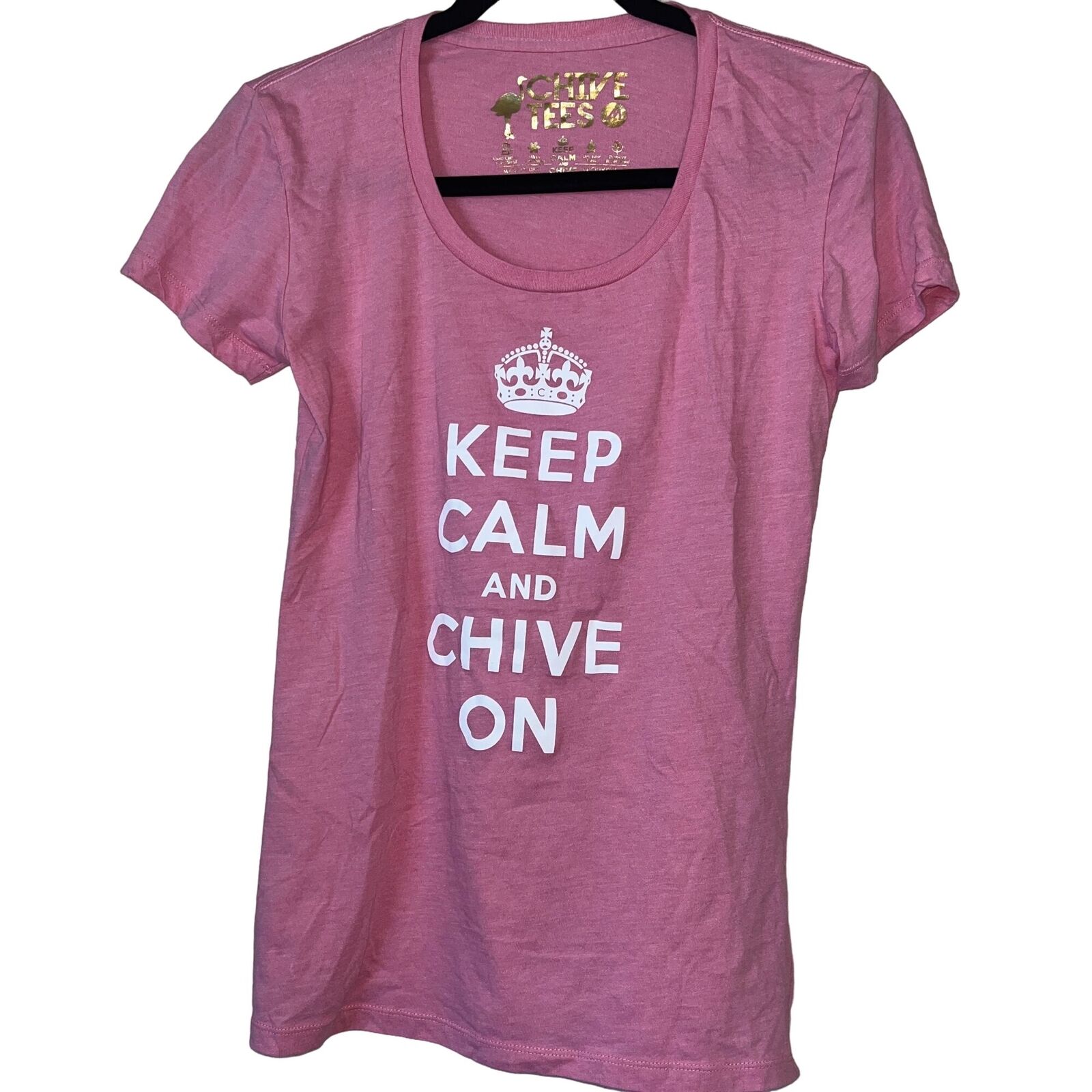 Chive Tees Womens Sz M Keep Calm and Chive On Pink White