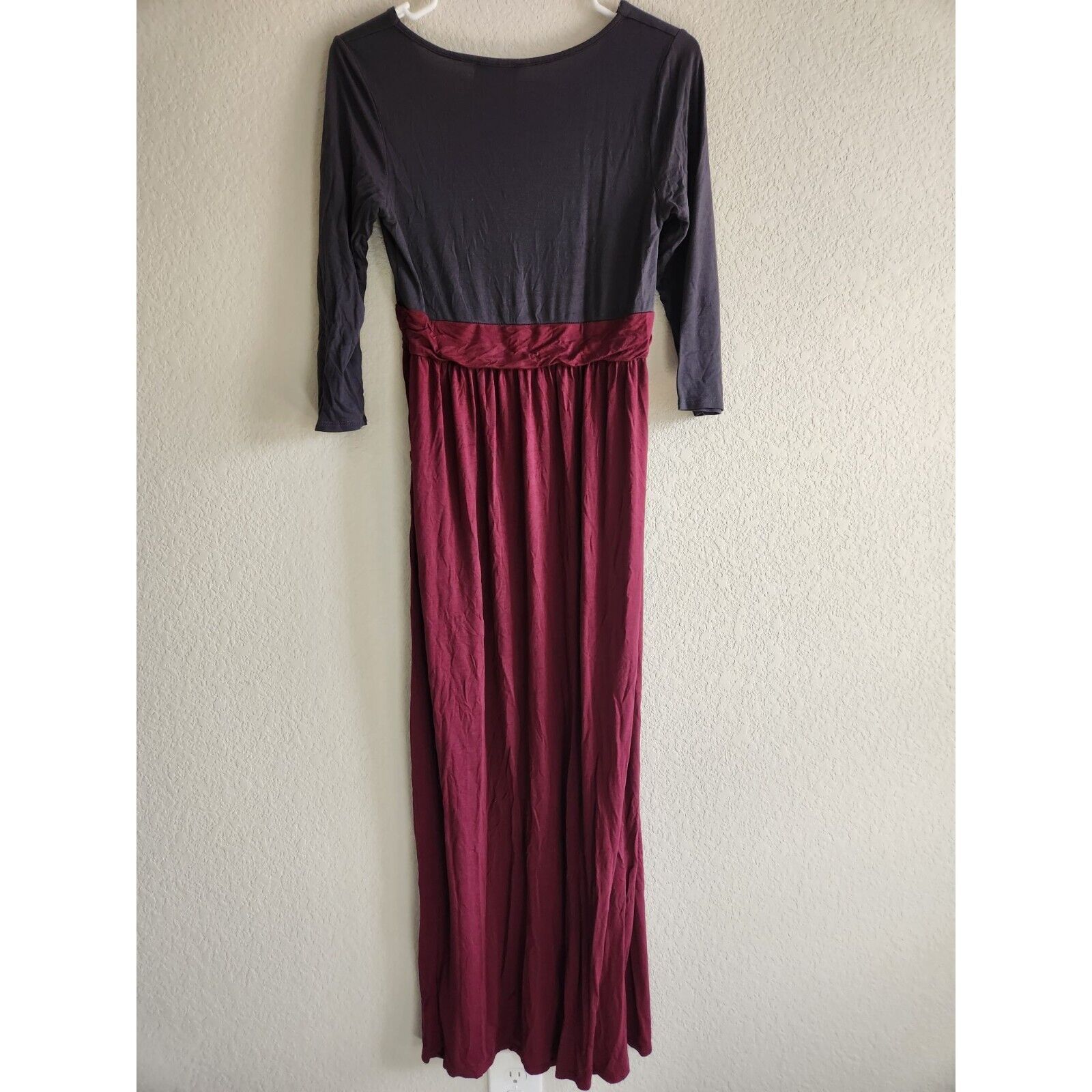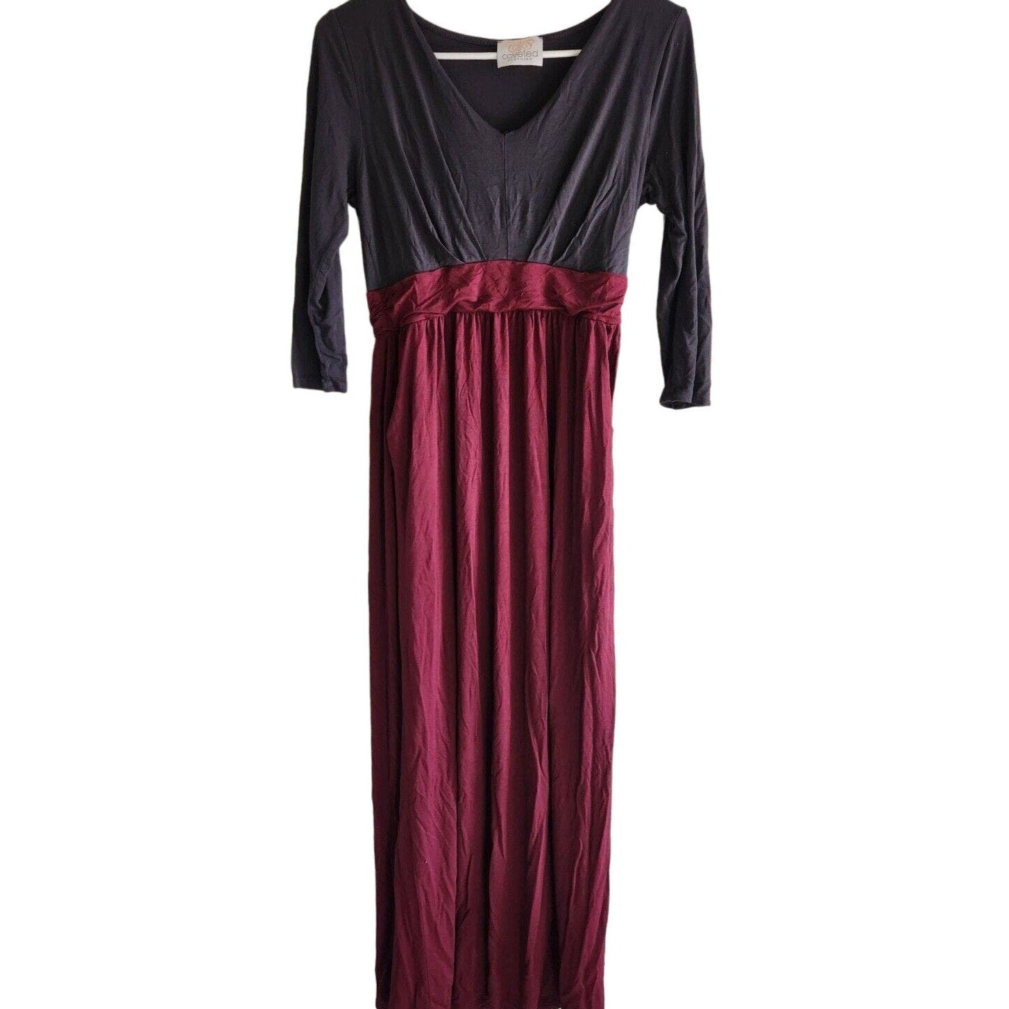 Coveted Clothing Womens Sz M Maxi Dress Long Sleeve Maroon and Navy