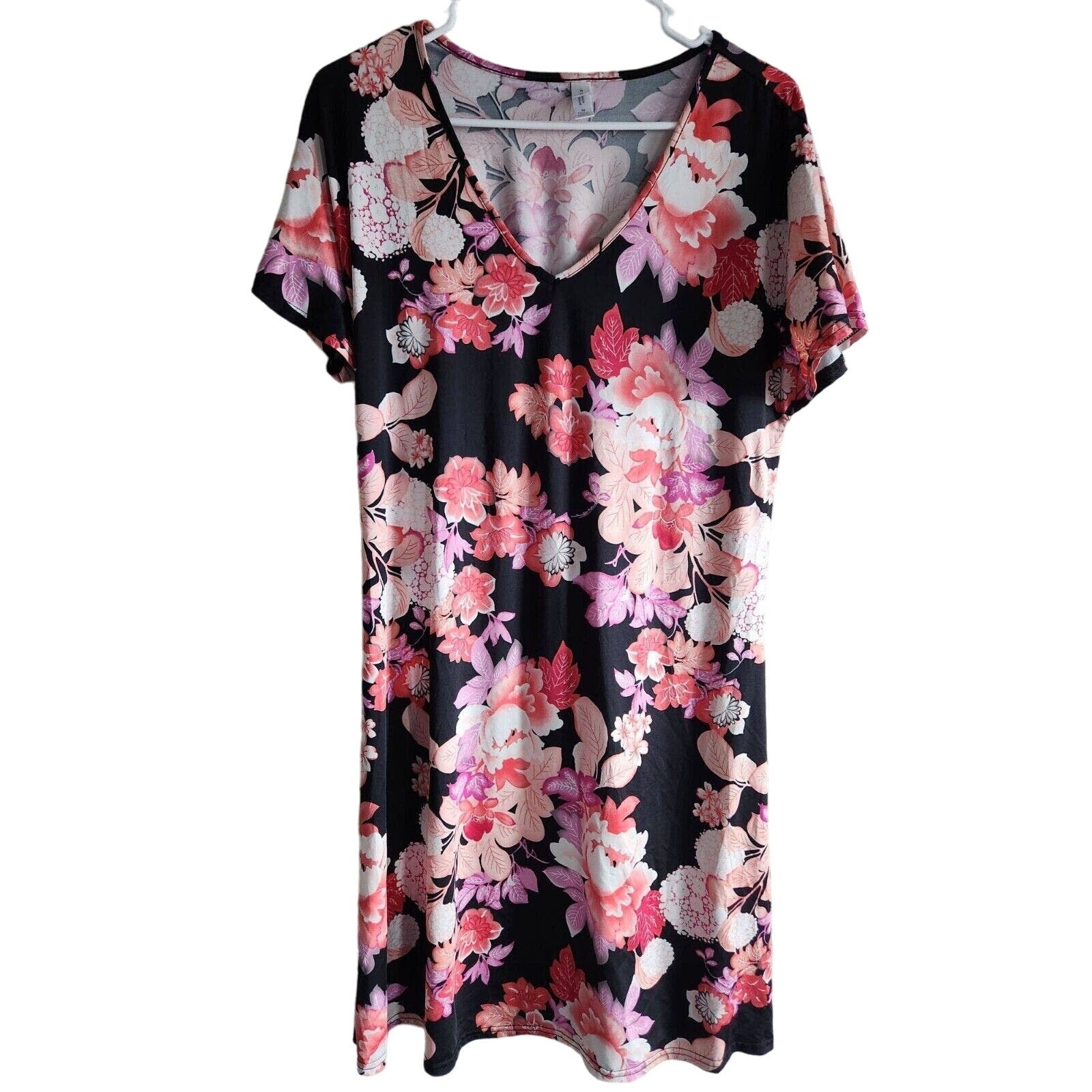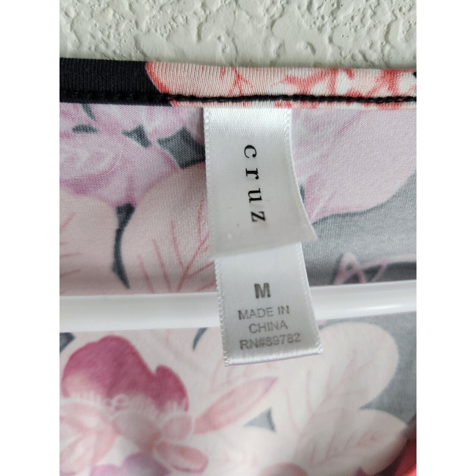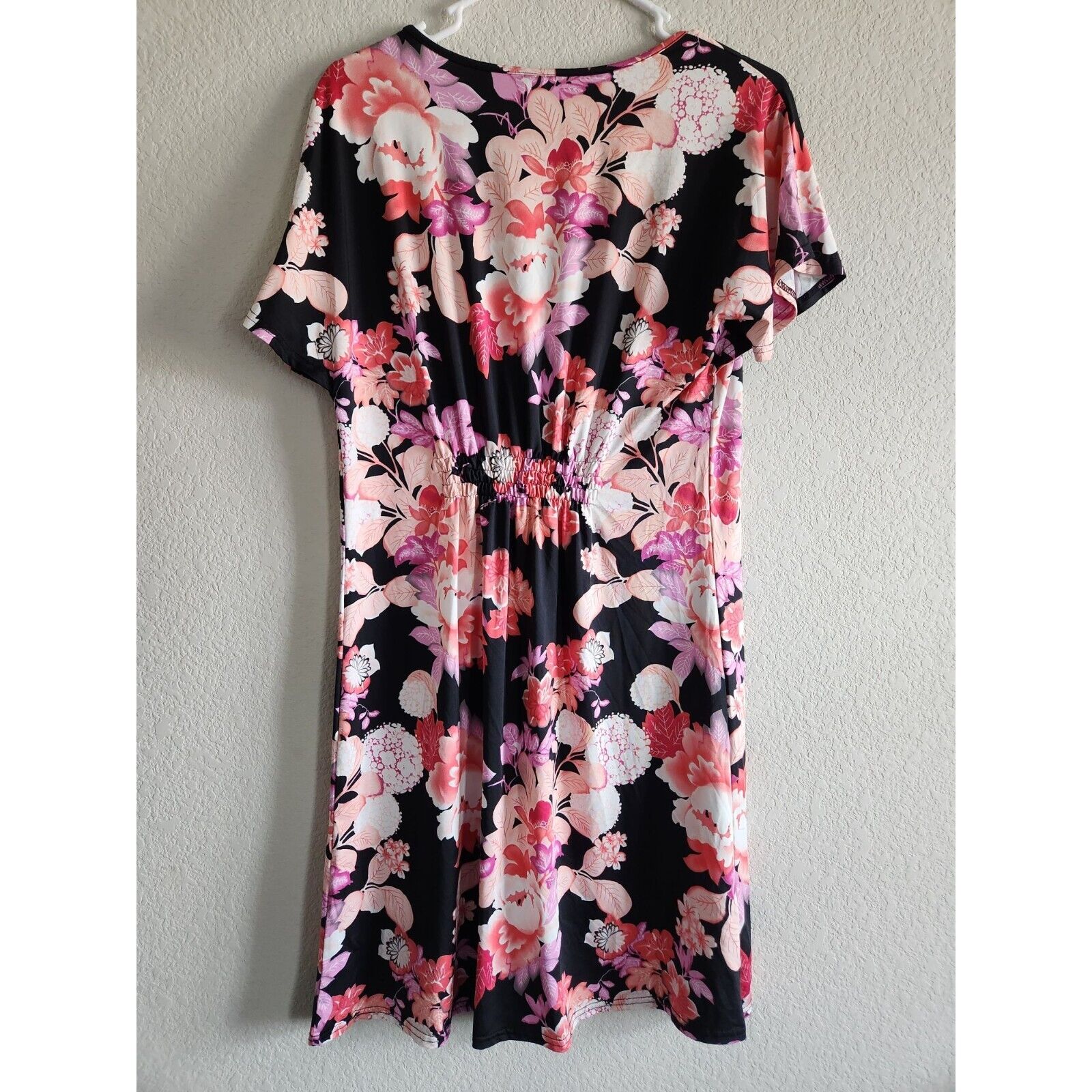 Cruz Womens Sz M Knee Length Short Sleeve Dress Black Pink Floral