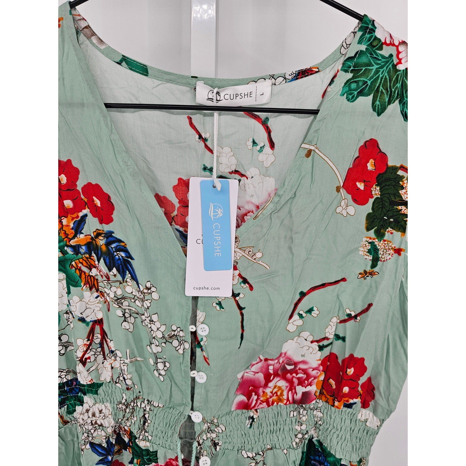 Cupshe Womens Sz L Maxi Length Swimsuit Coverup Sage Green Floral NEW