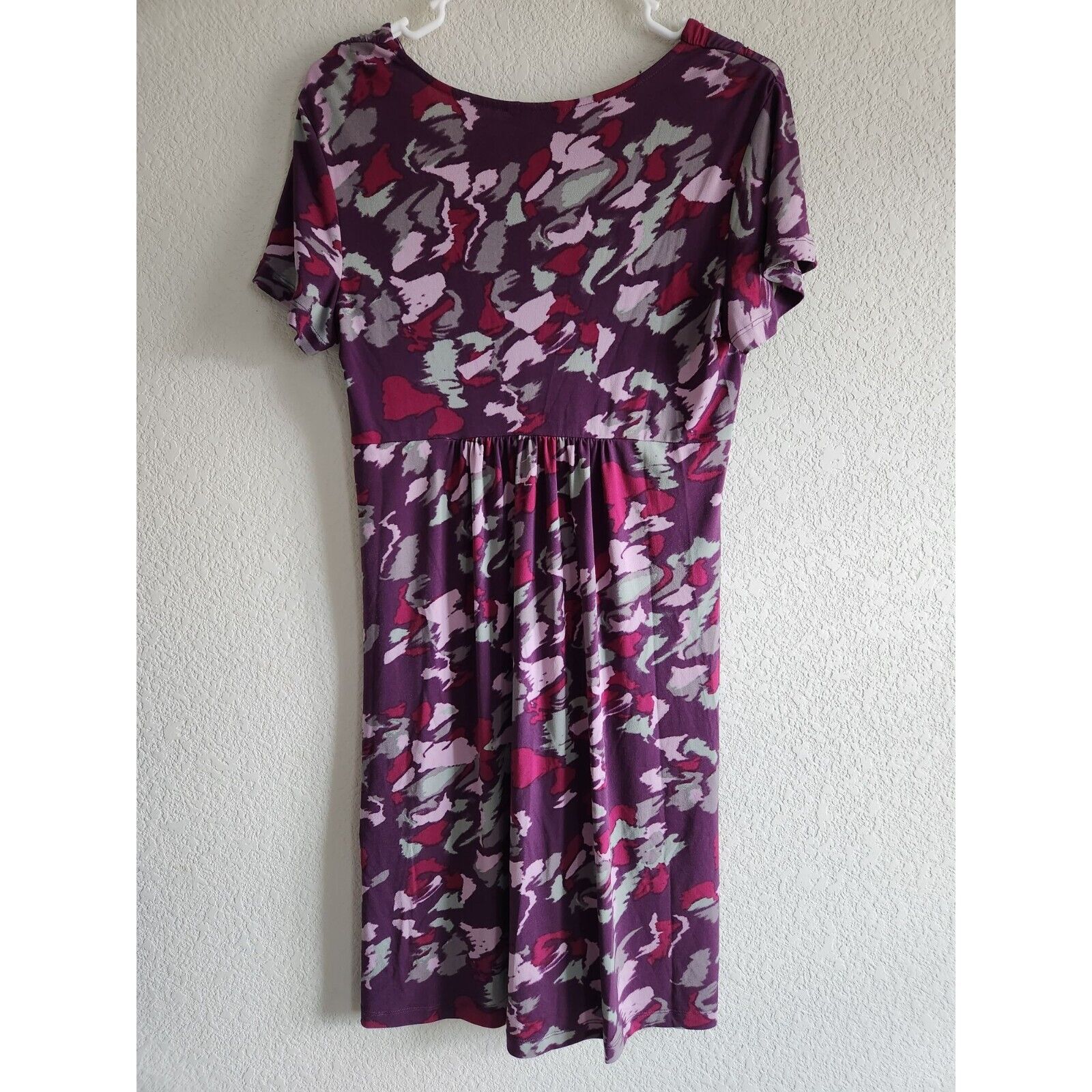Daisy Fuentes Womens Sz M Knee Length Short Sleeve Dress Purple Knotted Front
