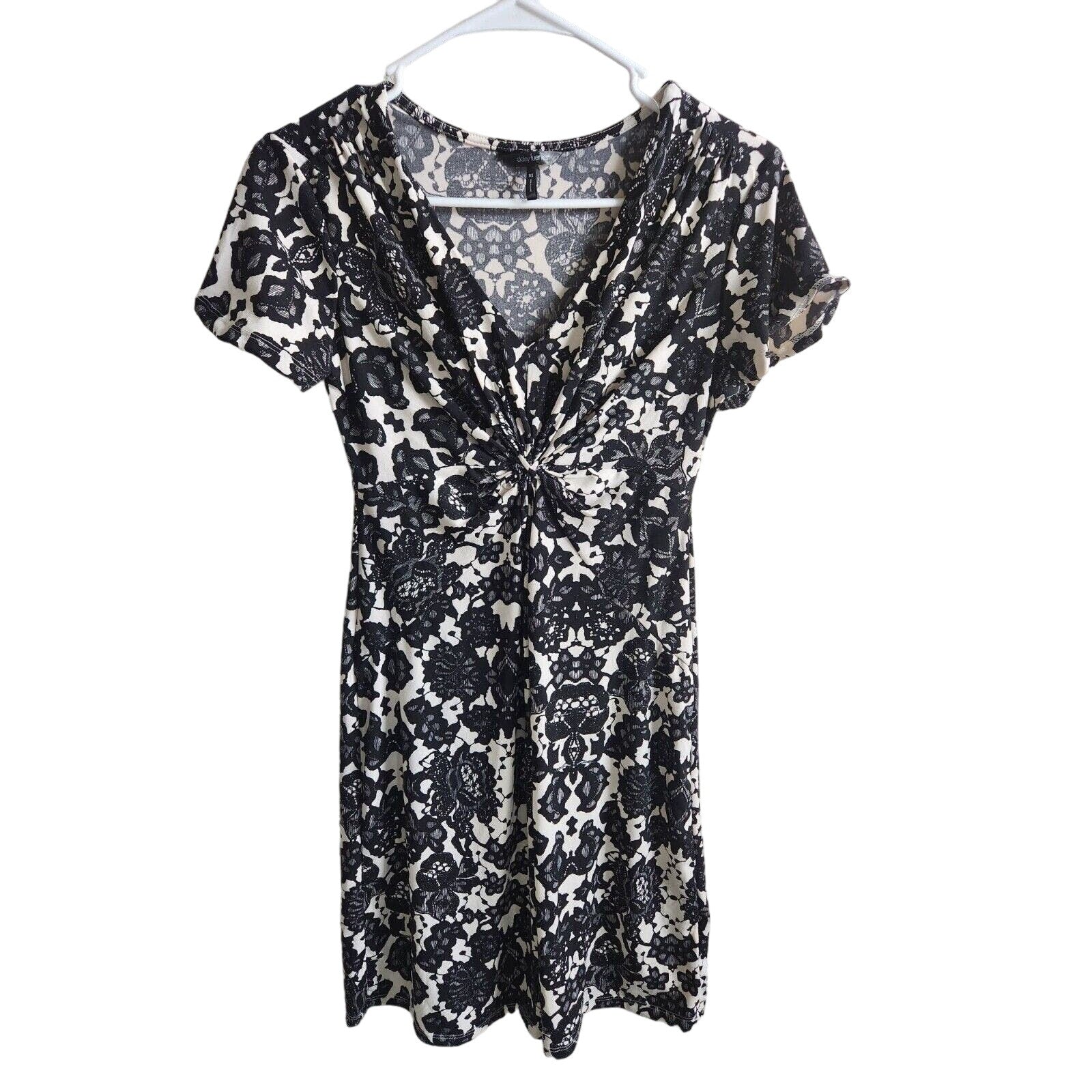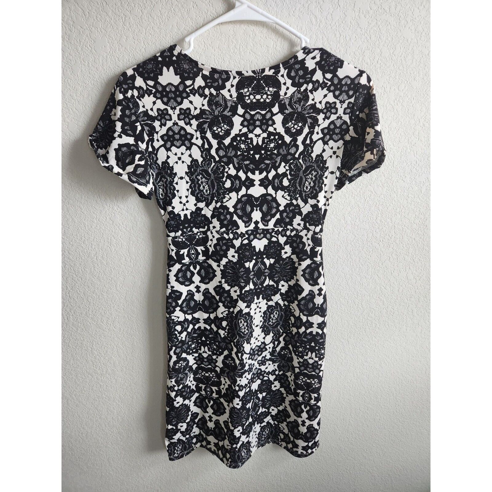 Daisy Fuentes Womens Sz XS Short sleeve Knee Length Dress Black White Floral