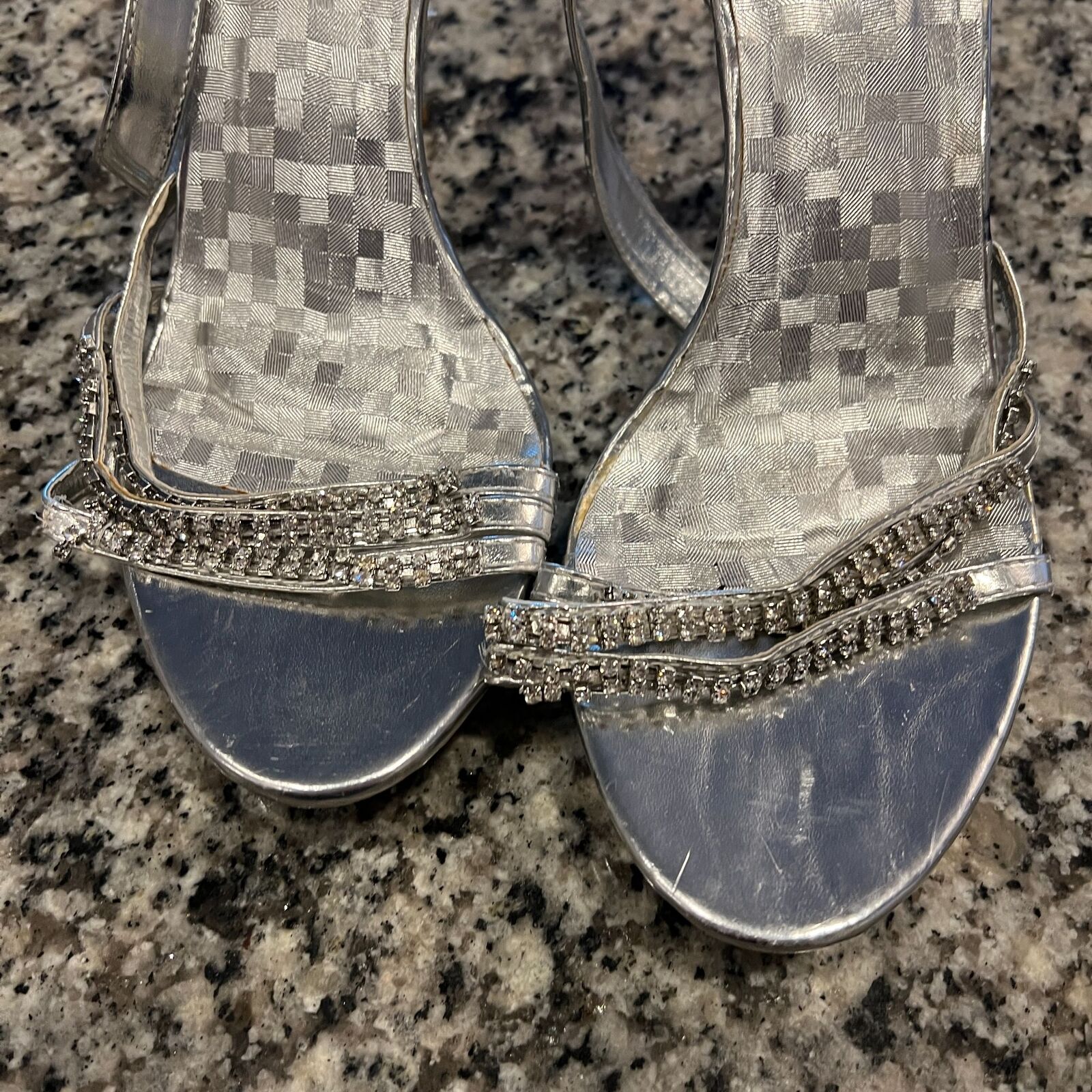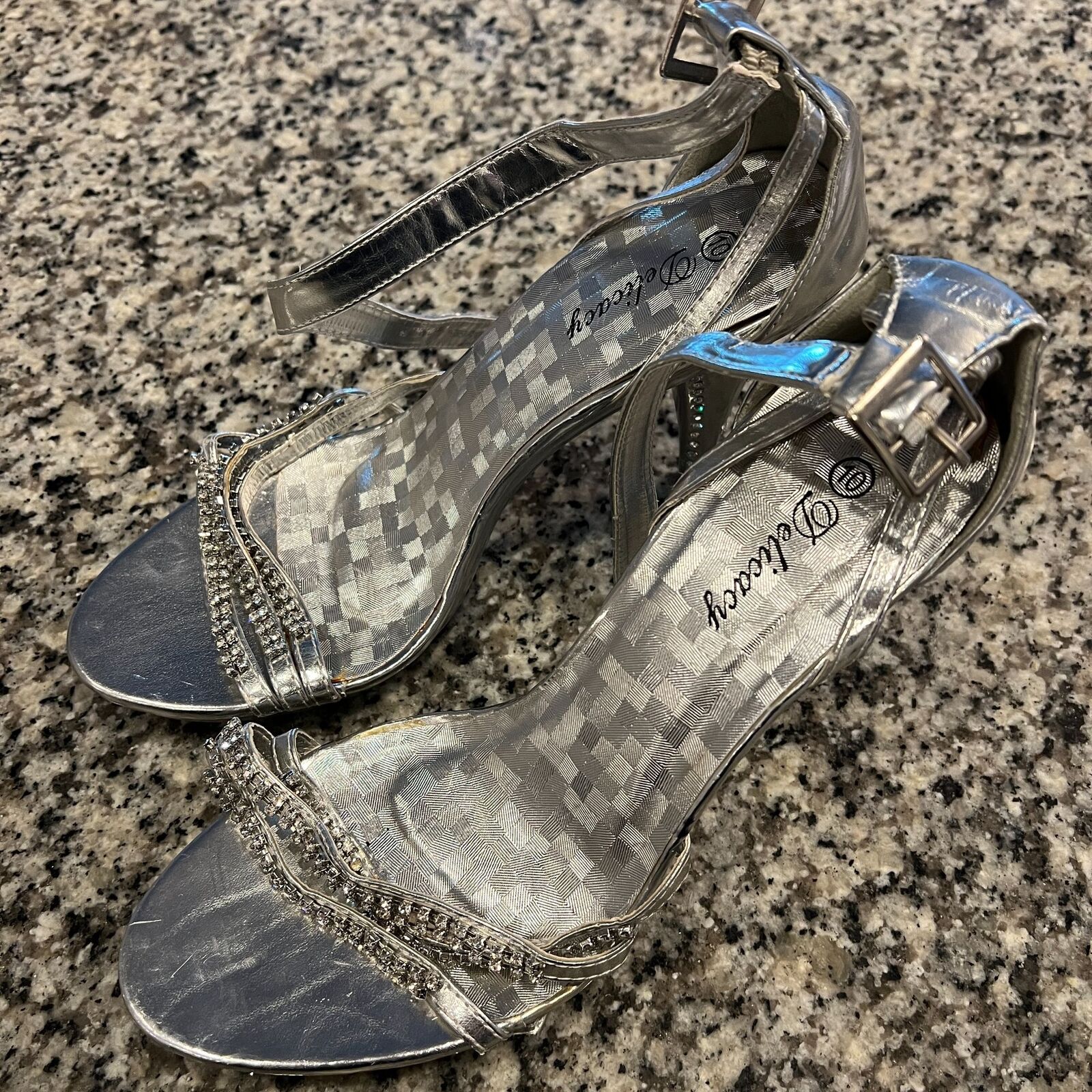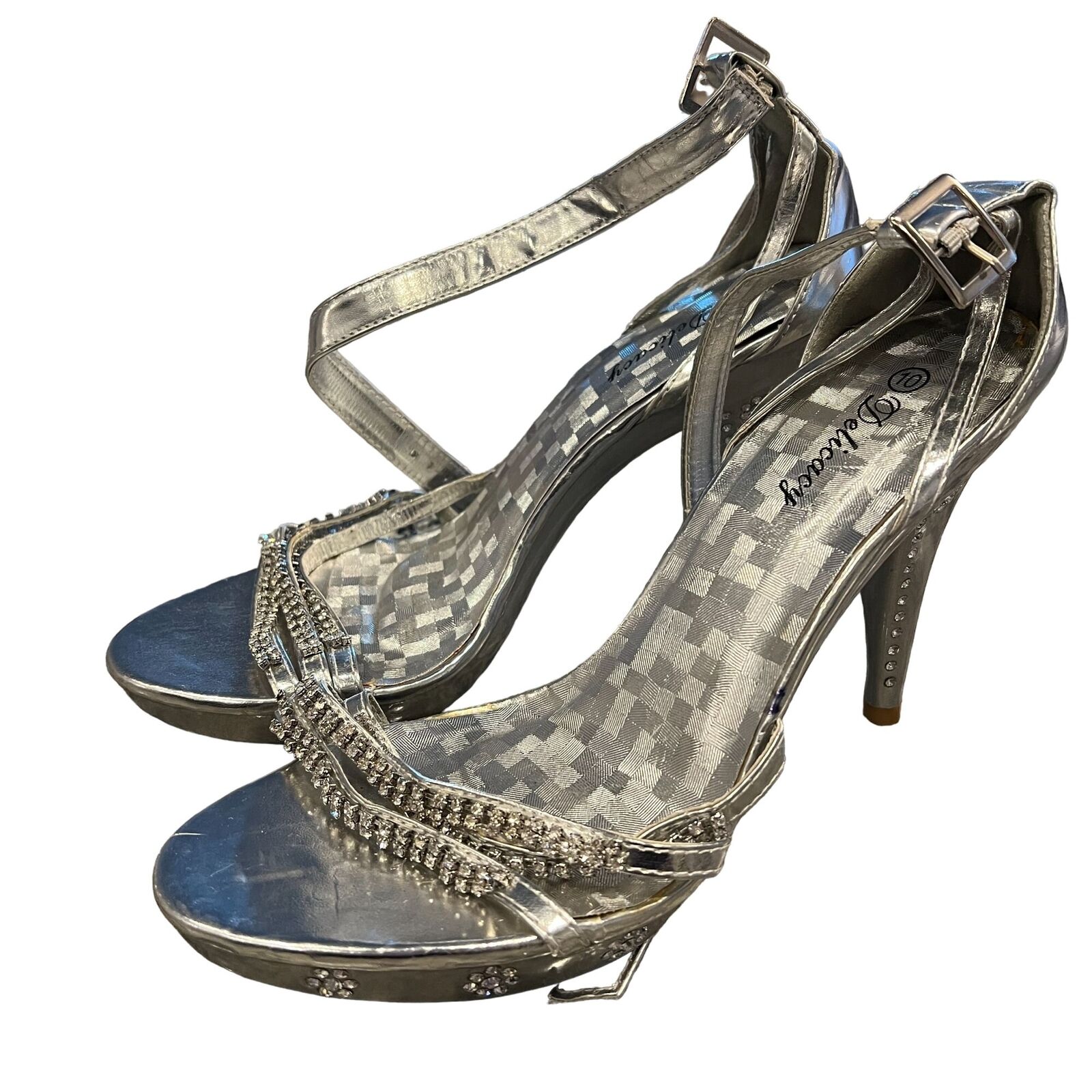 Delicacy Womens Sz 10 Silver and Rhinestone Strappy High Heels Y2K