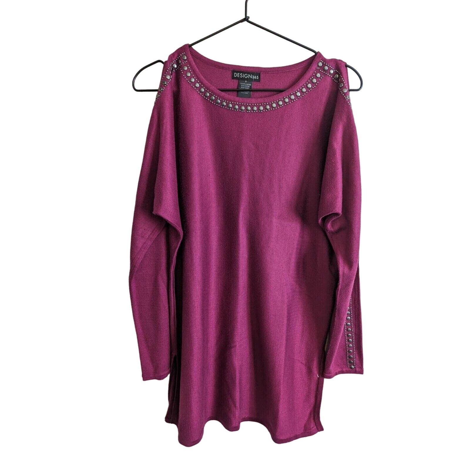 Design 365 Womens Sz S Cold Shoulder Mini Dress Purple Studded Long Sleeve