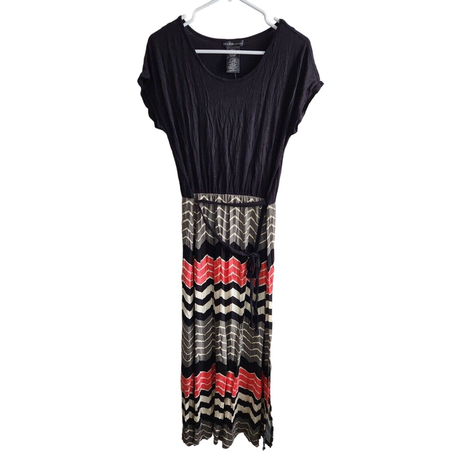 Design History Womens Sz M Short Sleeve Maxi Dress Black Chevron NEW