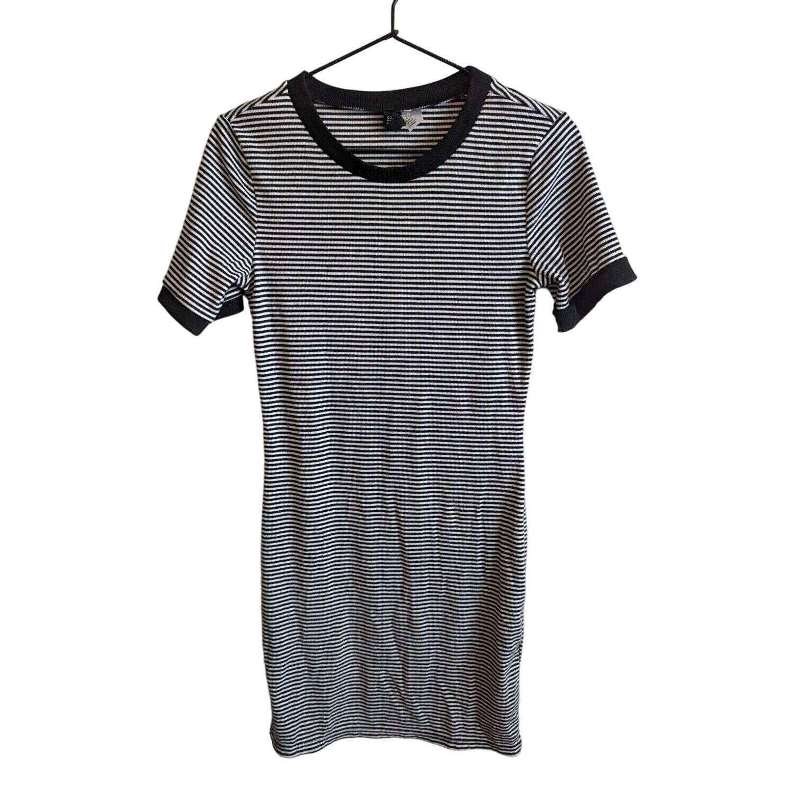 Divided by H7M Womens Sz 10 Black and White Ribbed Shirt Dress Striped