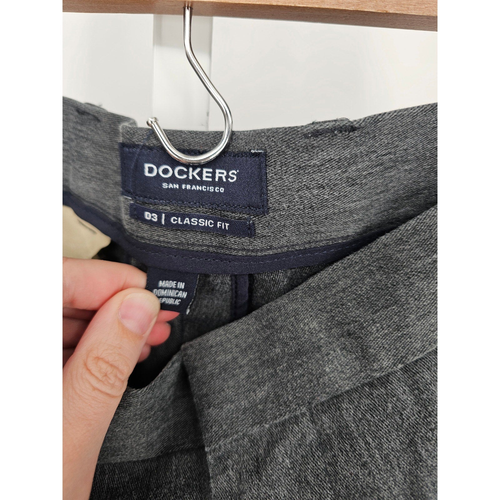 Dockers Mens Sz 34x34 Pleated Front Classic Fit Dress Pants Charcoal Gray