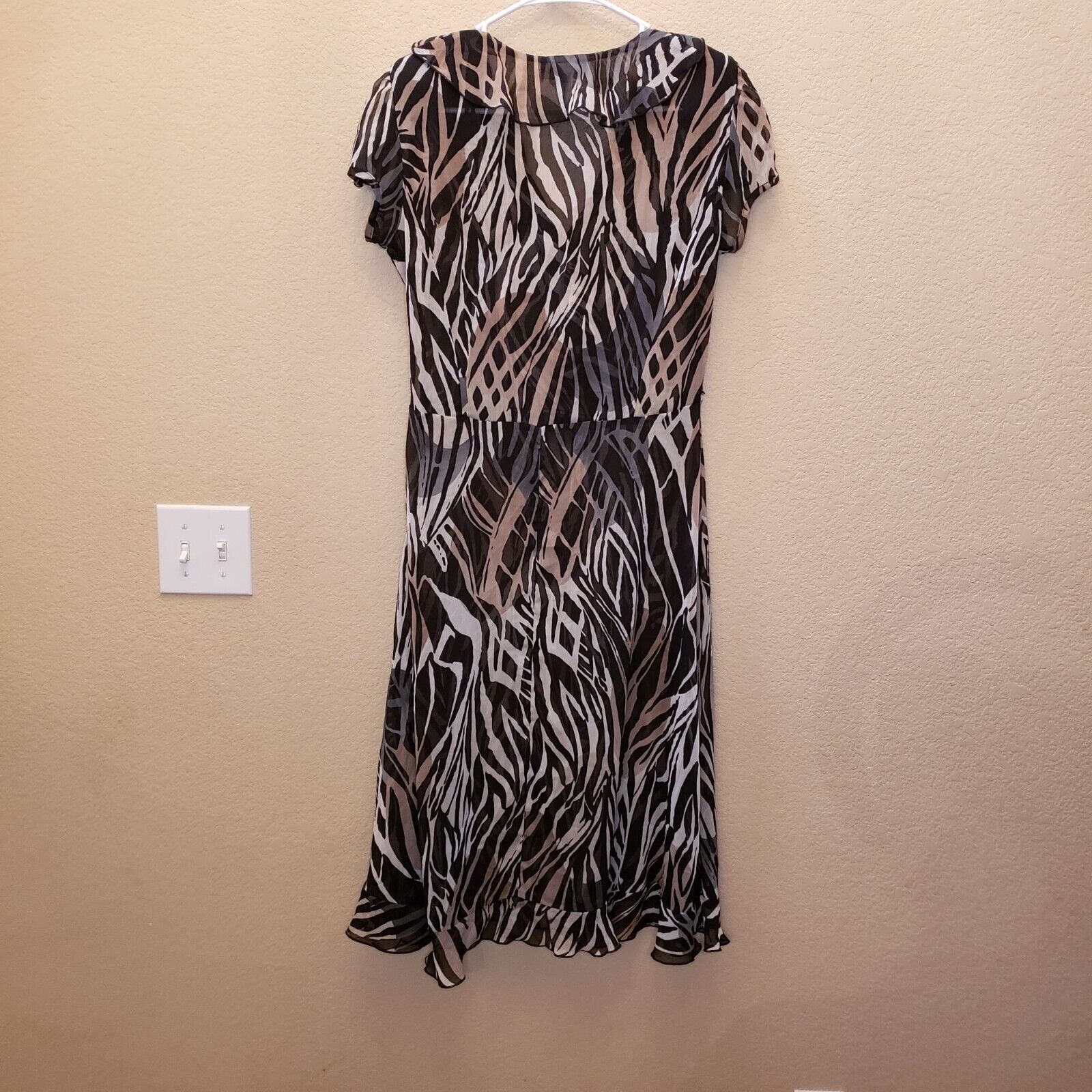 Dressbarn Womens Sz 10 Midi Ruffled Front Dress Zebra Animal Print