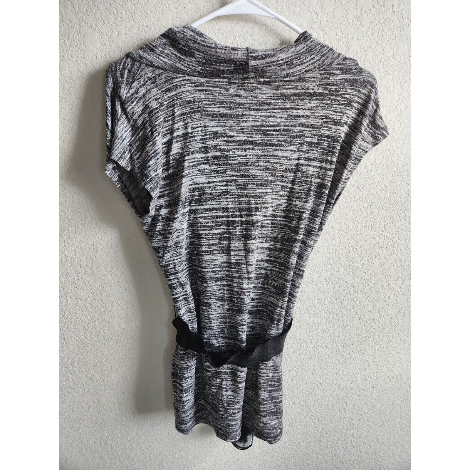 Dressbarn Womens Sz M Cowl Neck Short Sleeve Sweater Belted Gray Spacedye