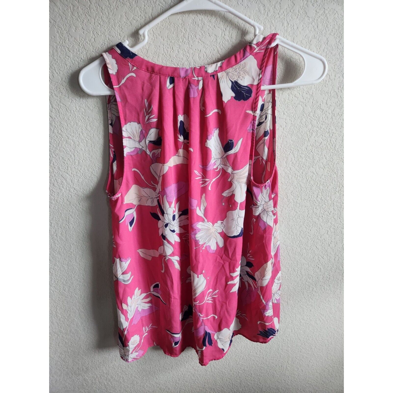 Elaine Rose Womens Sz M Sleeveless Blouse Pink White Floral