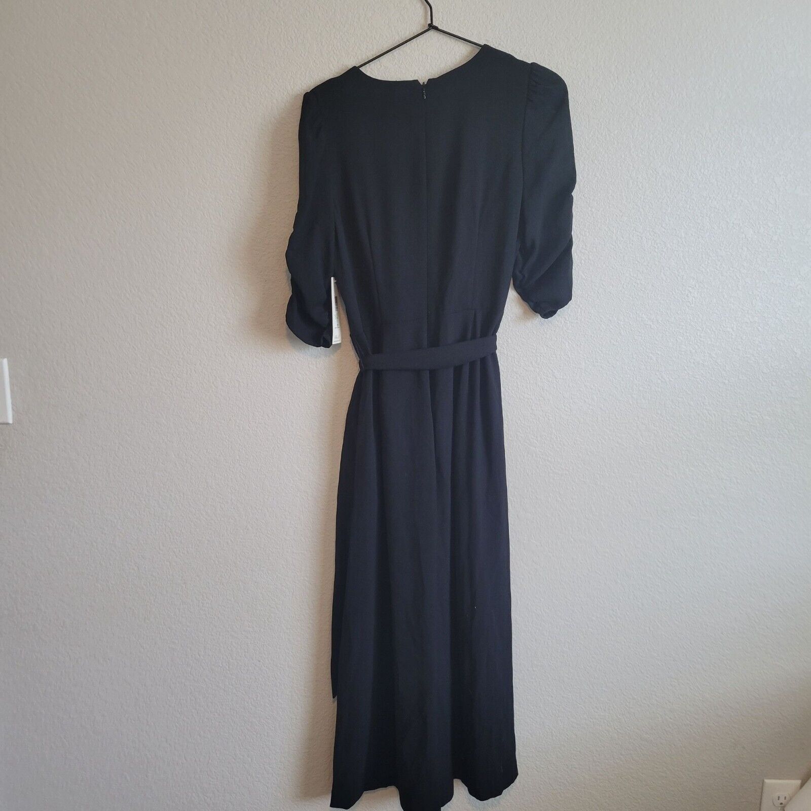 Eliza J Womens Sz 4 Maxi Dress Solid Black Short Sleeve Belted NEW
