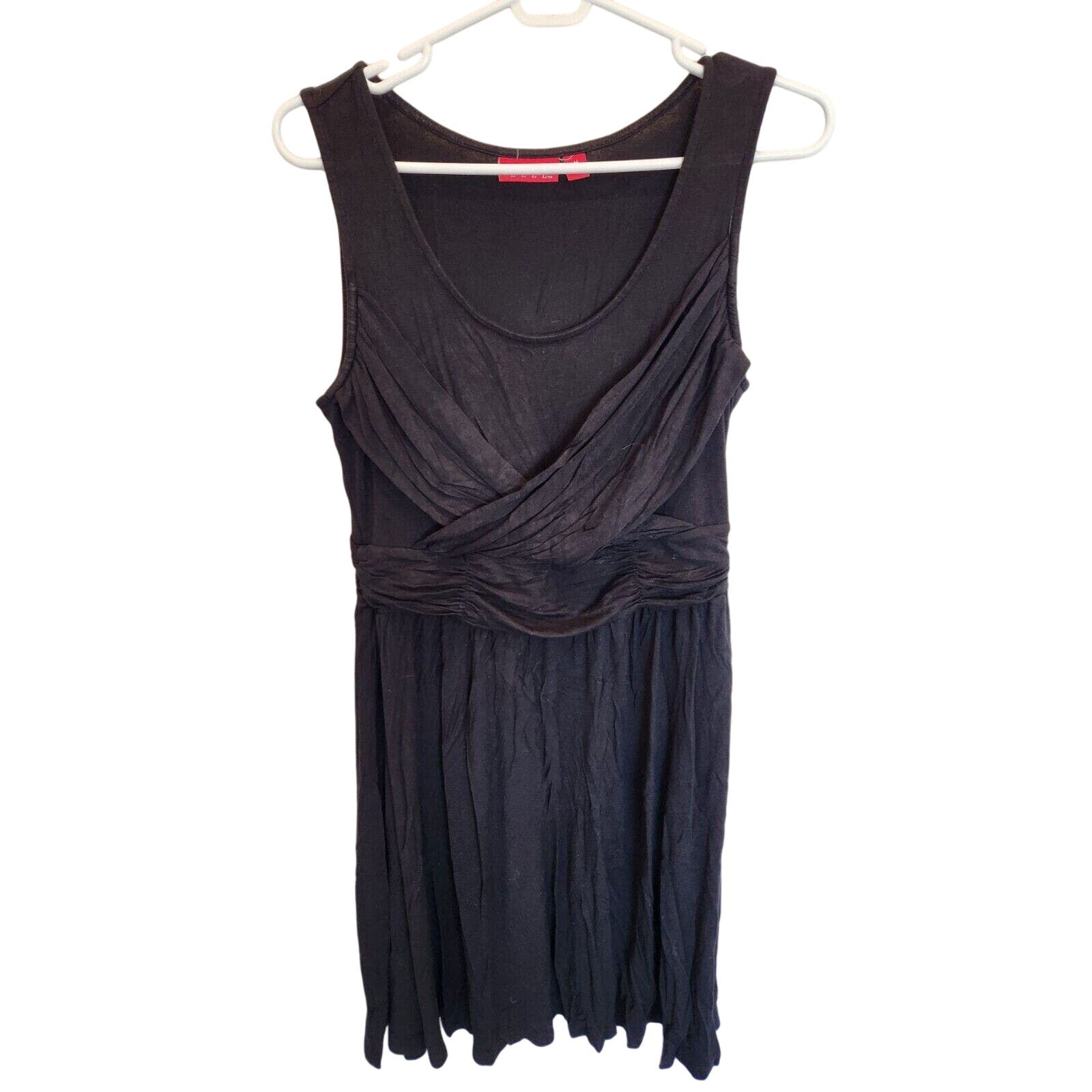 Elle Womens Sz M Knee Length Sleeveless Draped Black Dress