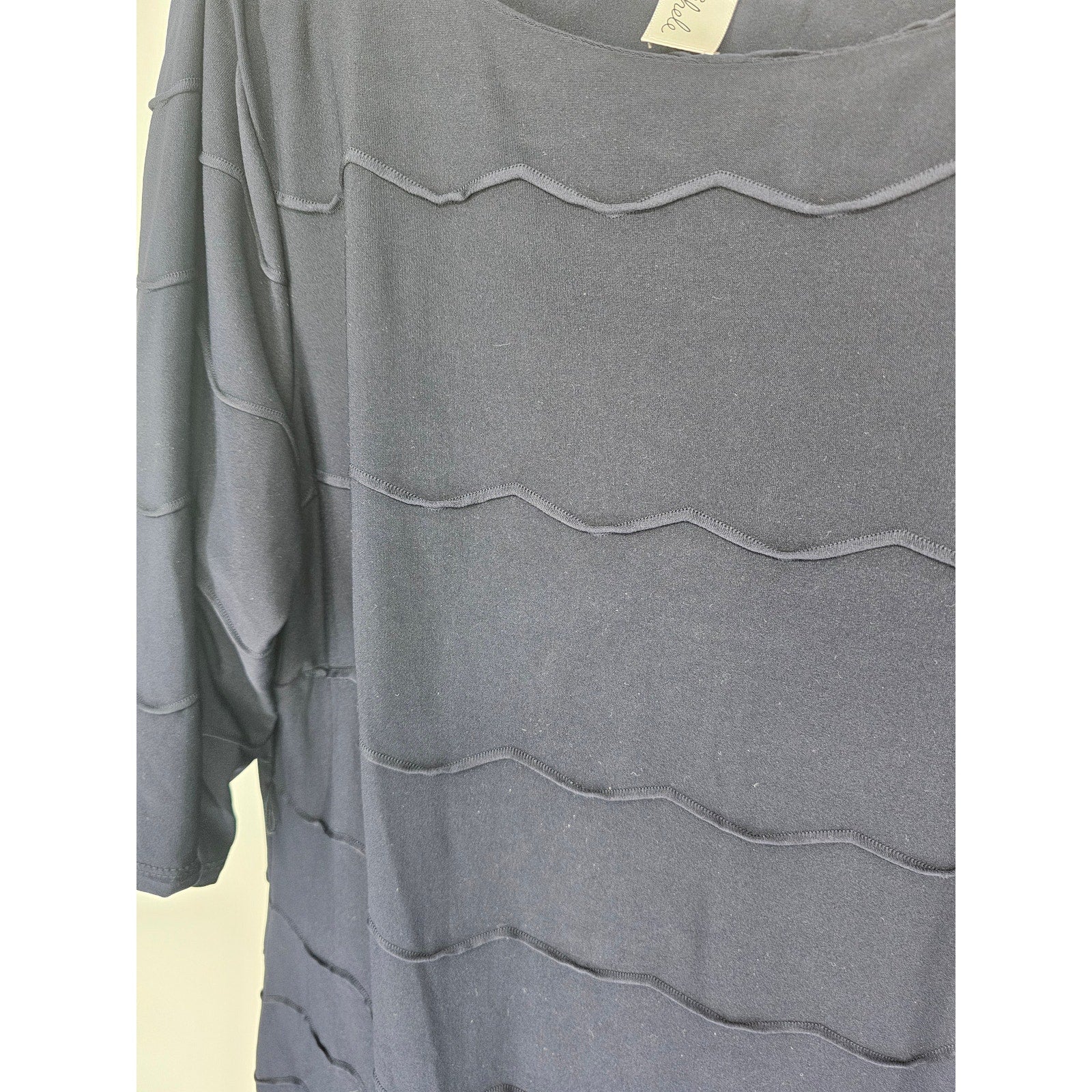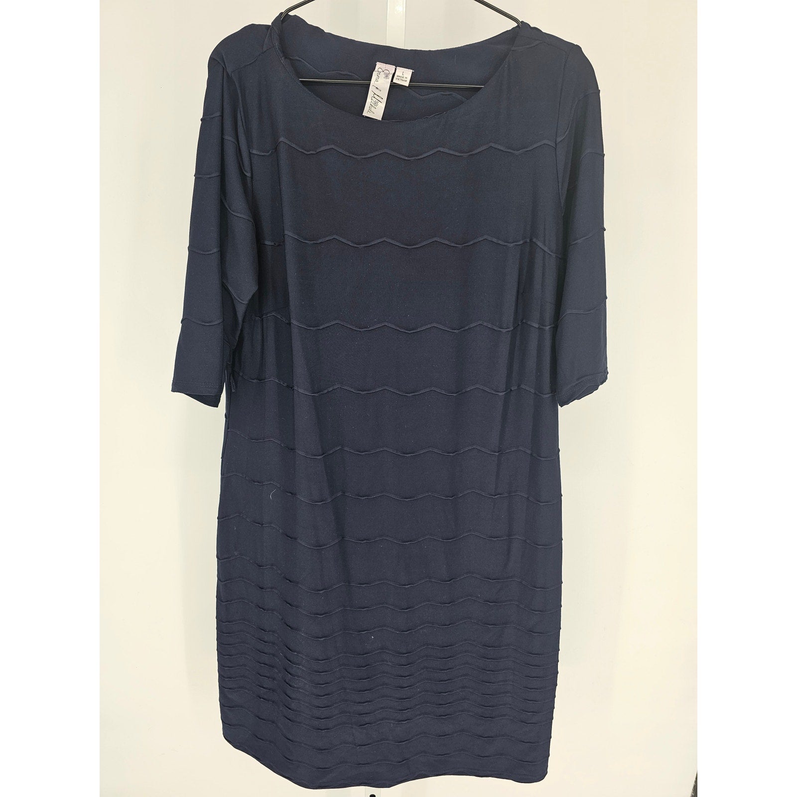 Emma & Michele Womens Sz L 3/4 Sleeve Kne Length Dress Navy Blue Textured