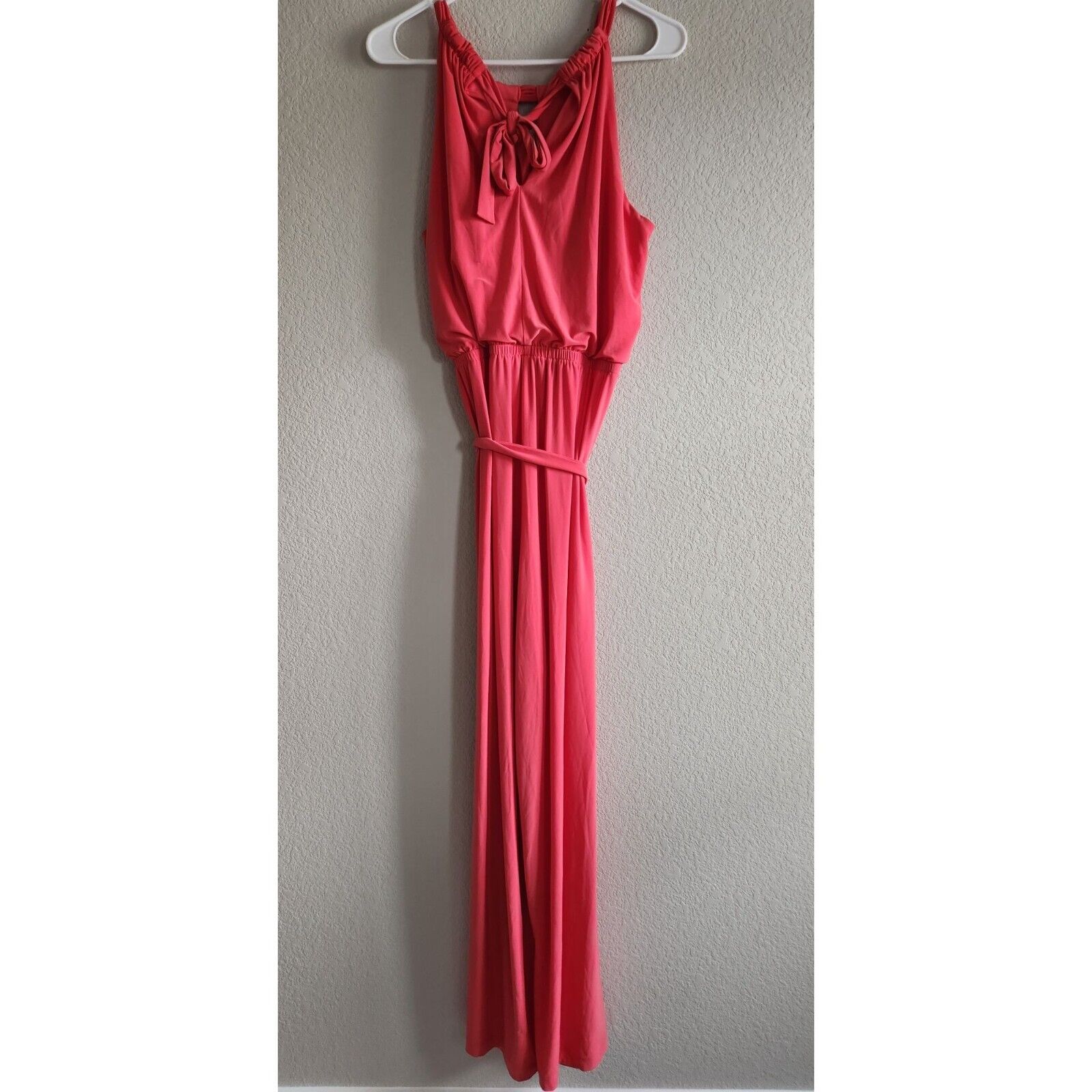 Emma & Michele Womens Sz XL Maxi Dress Coral Pink Belted