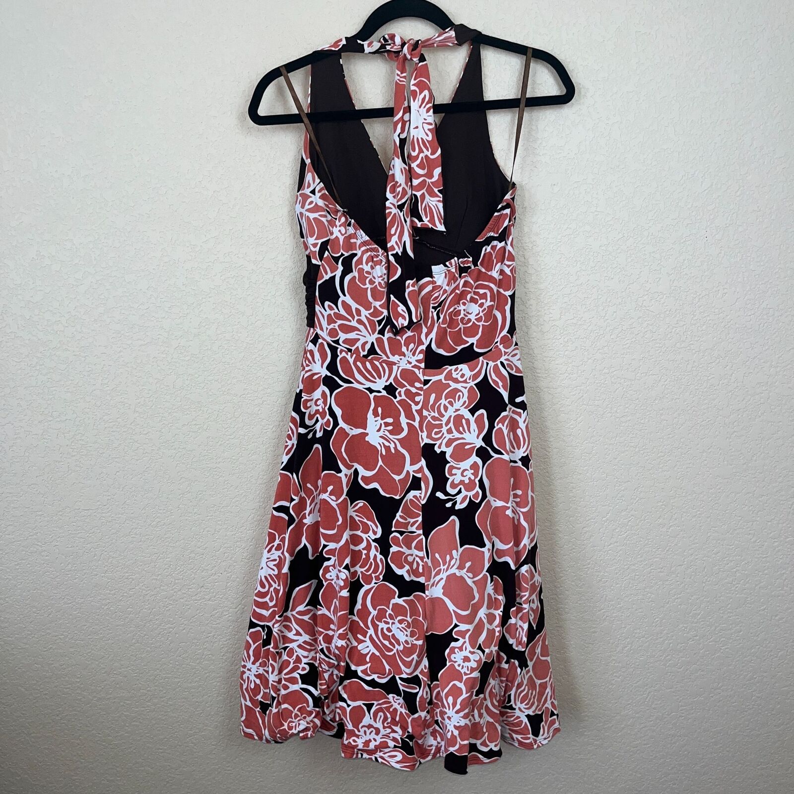 En Focus Studio Womens Sz 8 Halter Dress Knee Length Orange Brown Floral
