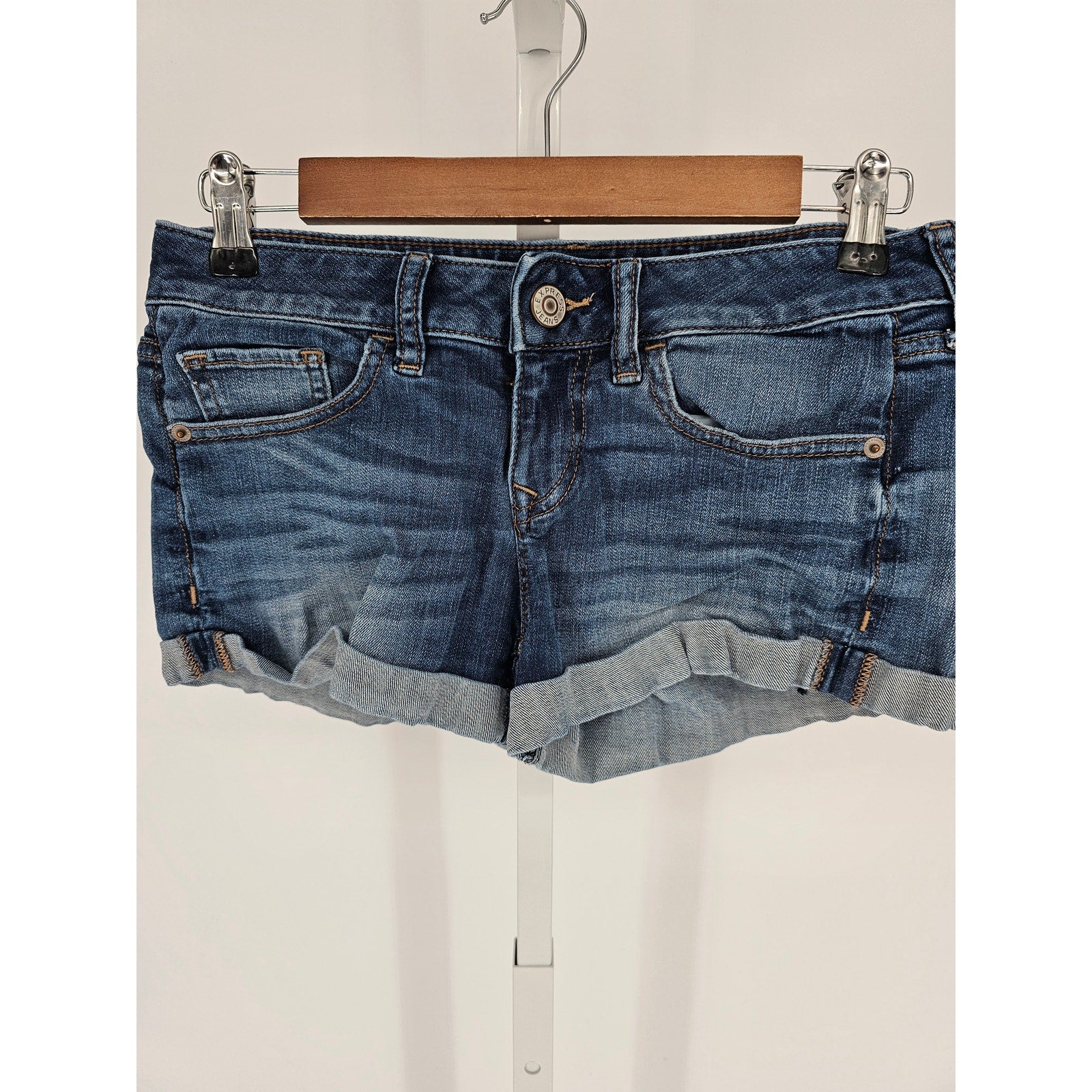 Express Jeans Womens Sz 0 Medium Wash Blue Jean Shorts Cuffed