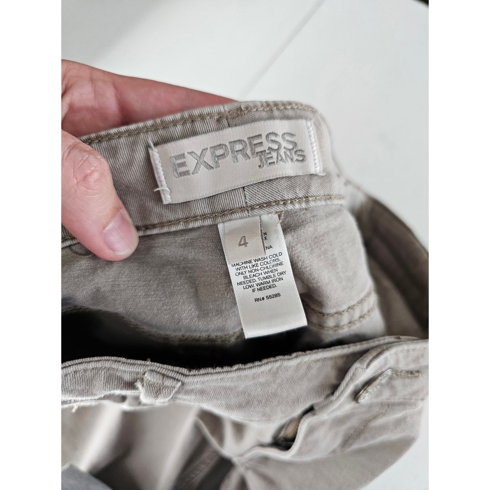 Elevate your wardrobe with these stylish low-rise skinny jeans from Express. The taupe, beige, and gray colors make them versatile for any occasion. These jeans are perfect for the fashion-forward woman who wants to look her best. Crafted with quality materials, these jeans will last for years to come. They are a must-have addition to any antique collection. Don't miss out on the opportunity to own these timeless jeans.