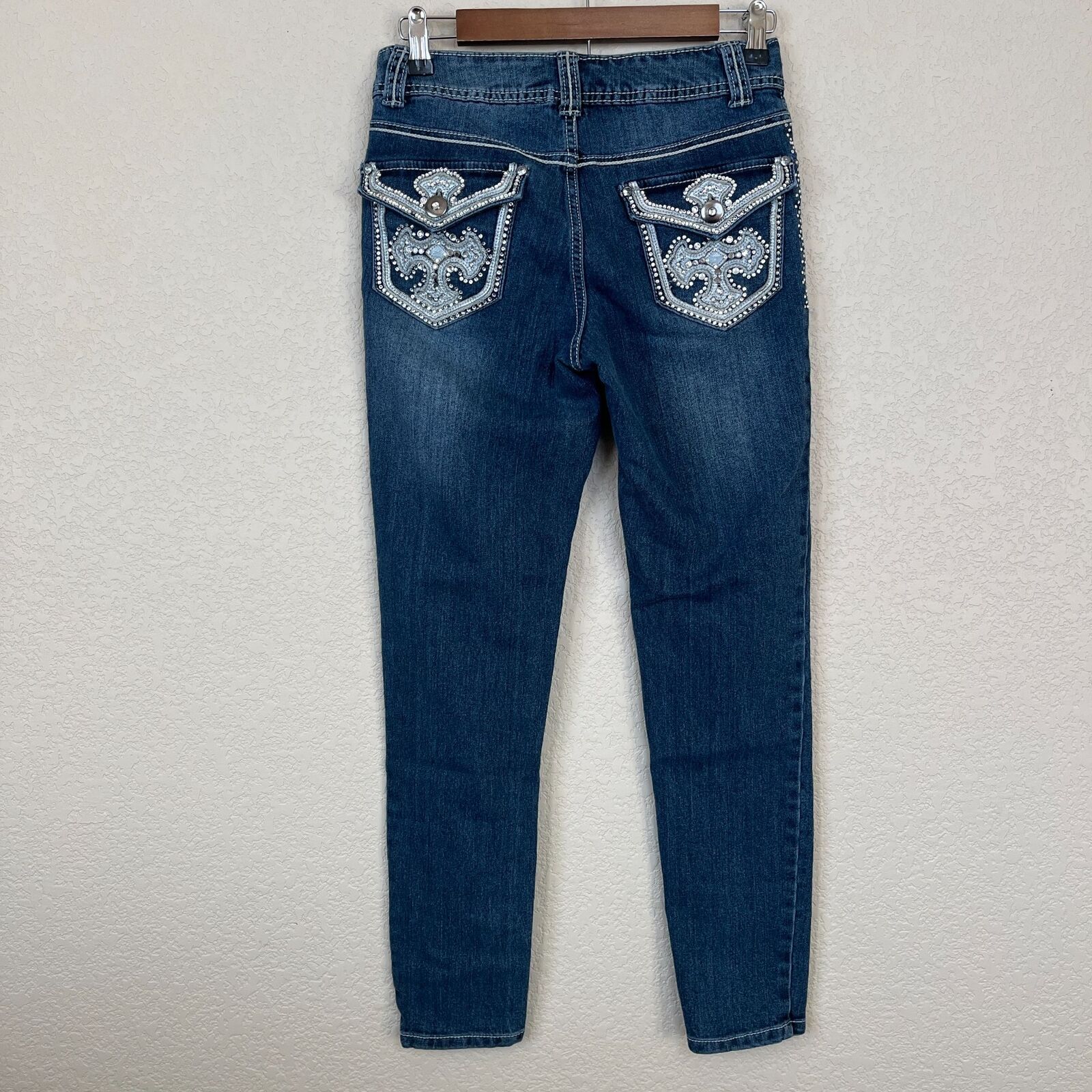 Faded Glory Womens Sz 4 Skinny Jeans Medium Wash Rhinestone Details
