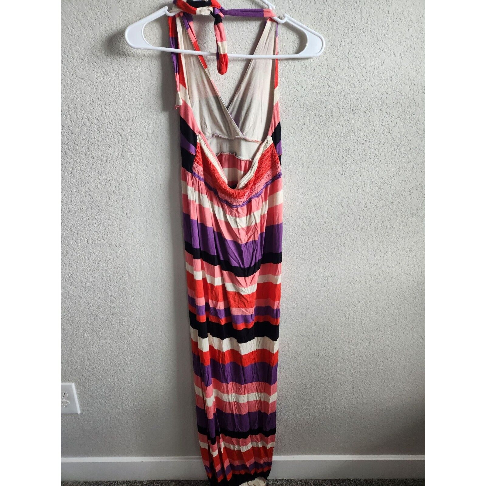 Felicity & Coco Womens Sz M Maxi Halter Dress Pink Purple Black Striped