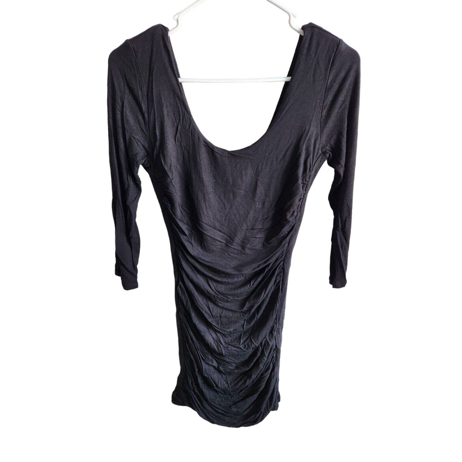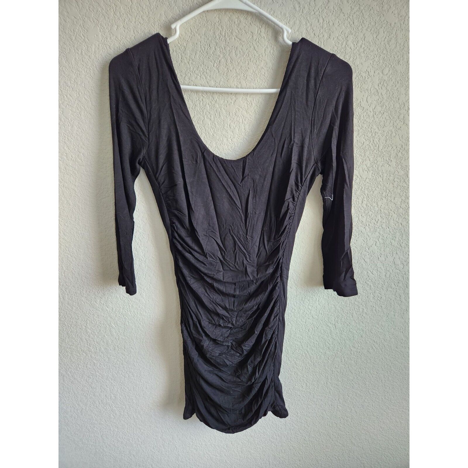 Forever 21 Womens Sz L Little Black Mini Dress Long Sleeve Metallic Sheen
