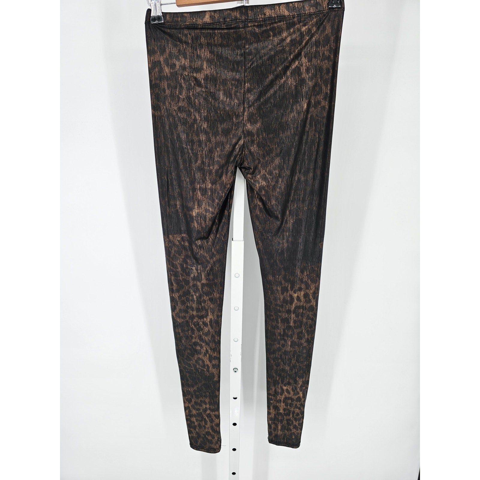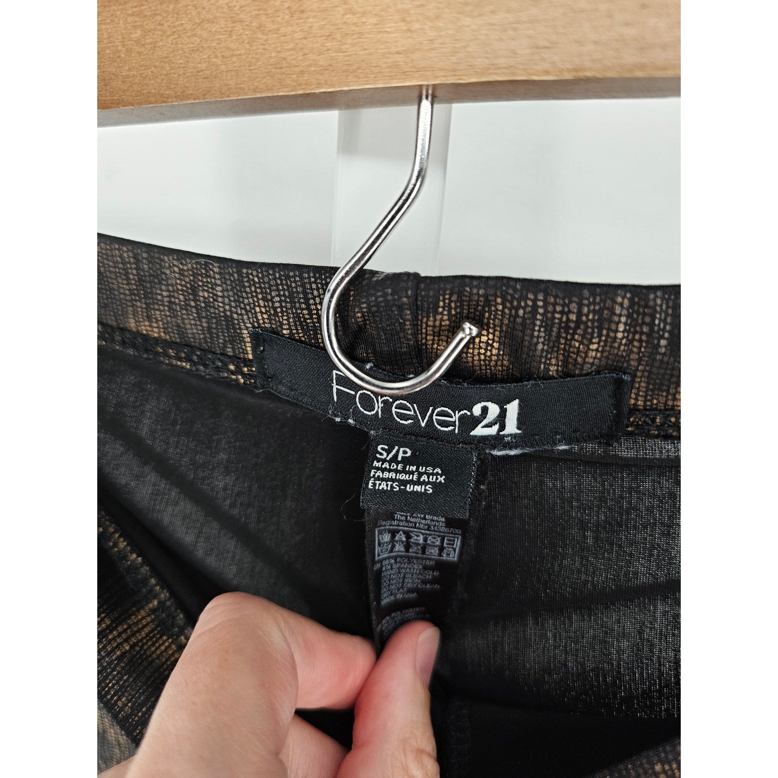 Forever 21 Womens Sz S Black and Gold Leggings metallic Sheen Shiny