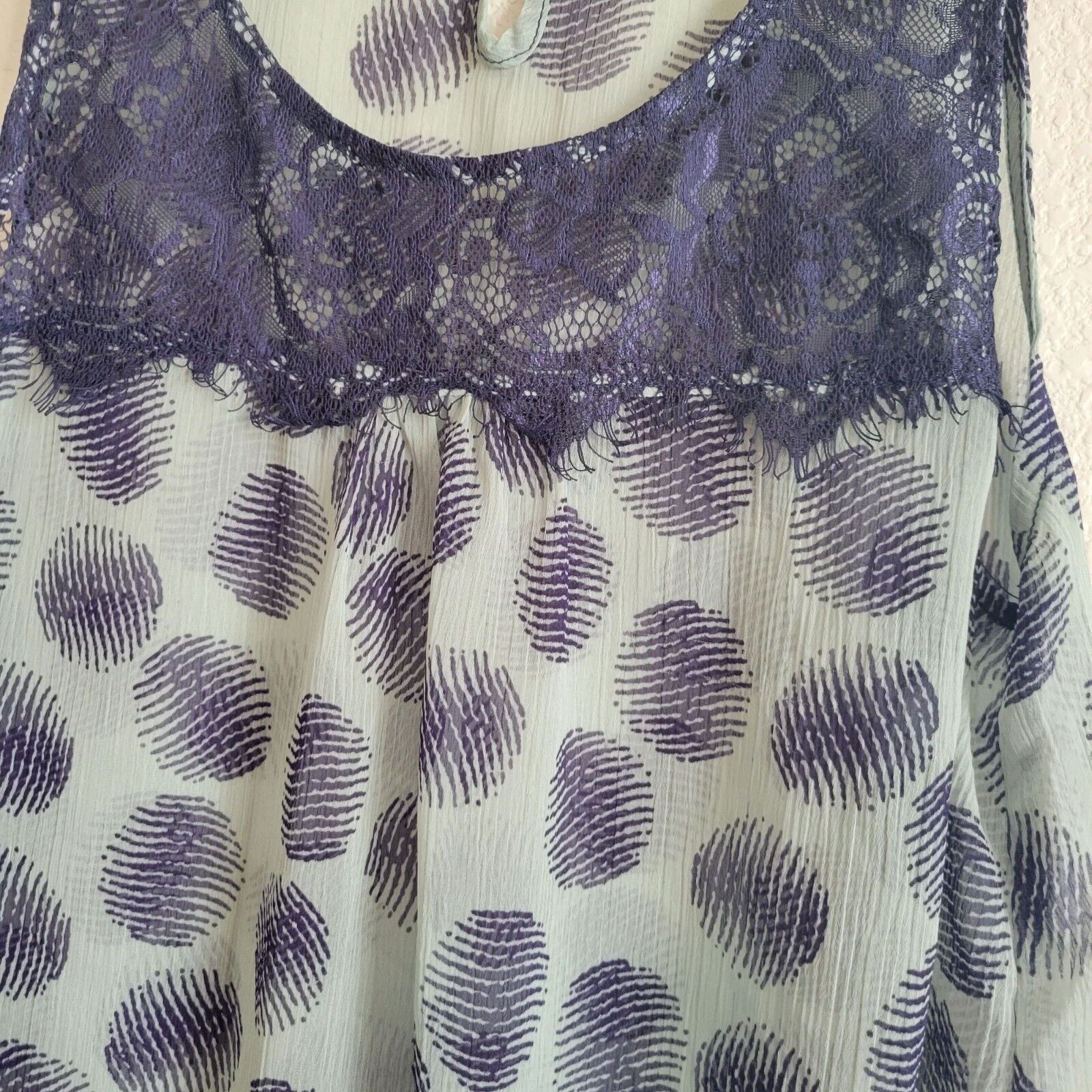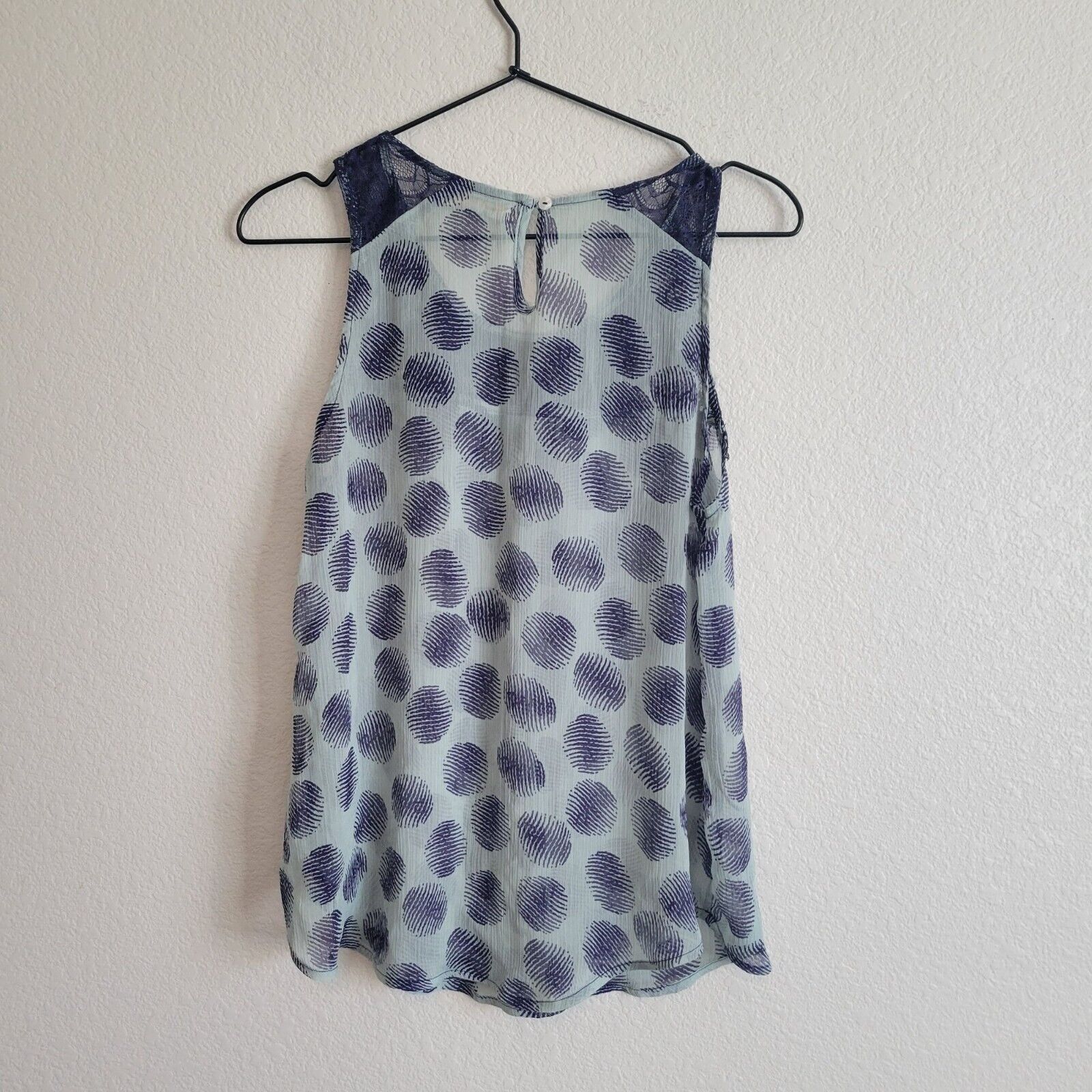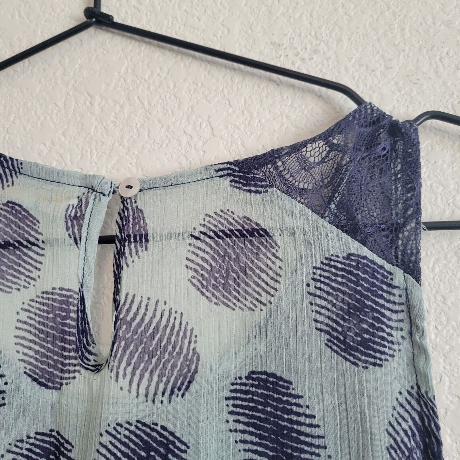 Freebird Womens Sz S Semi Sheer Tank Top Blouse Blue Flowy lace Trim